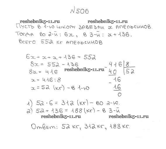 Готовая домашняя работа с ответами по Математике за 5 класс Мерзляк, Полонский, Якир Учебник Алгоритм успеха Вентана-граф 2016 ФГОС - §18. Деление 506
