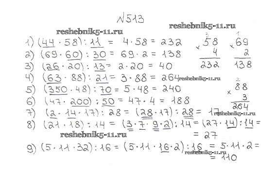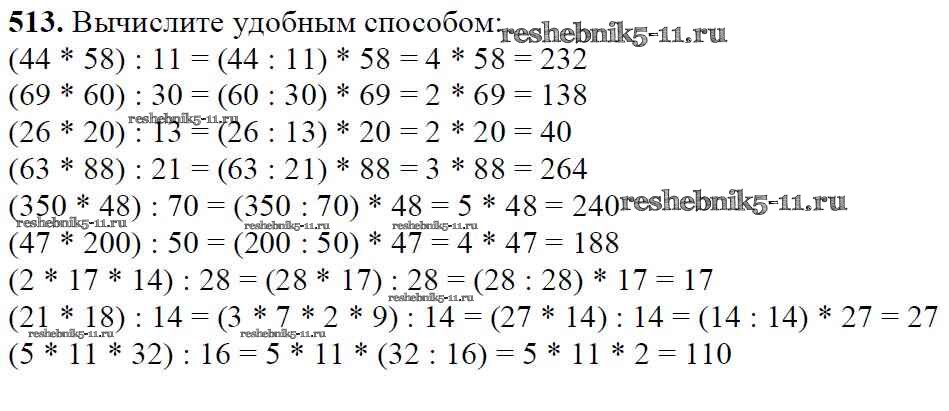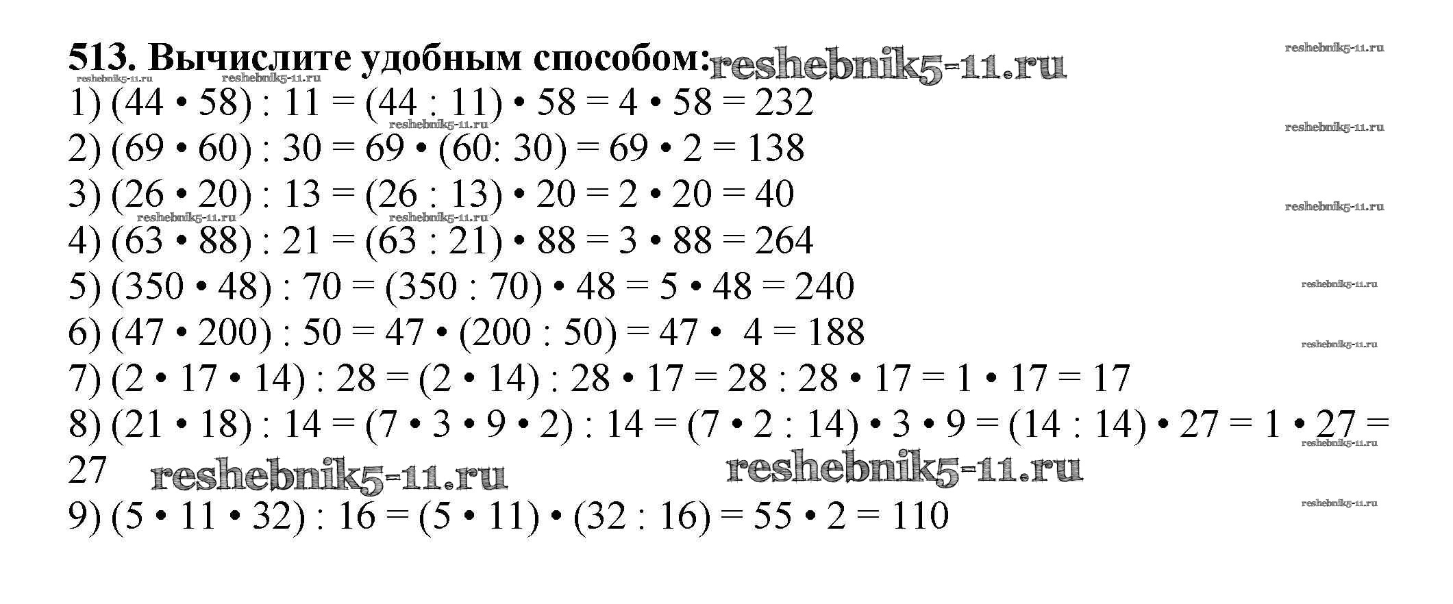 Готовая домашняя работа с ответами по Математике за 5 класс Мерзляк, Полонский, Якир Учебник Алгоритм успеха Вентана-граф 2016 ФГОС - §18. Деление 513