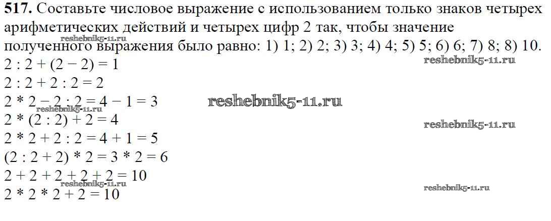 Готовая домашняя работа с ответами по Математике за 5 класс Мерзляк, Полонский, Якир Учебник Алгоритм успеха Вентана-граф 2016 ФГОС - §18. Деление 517