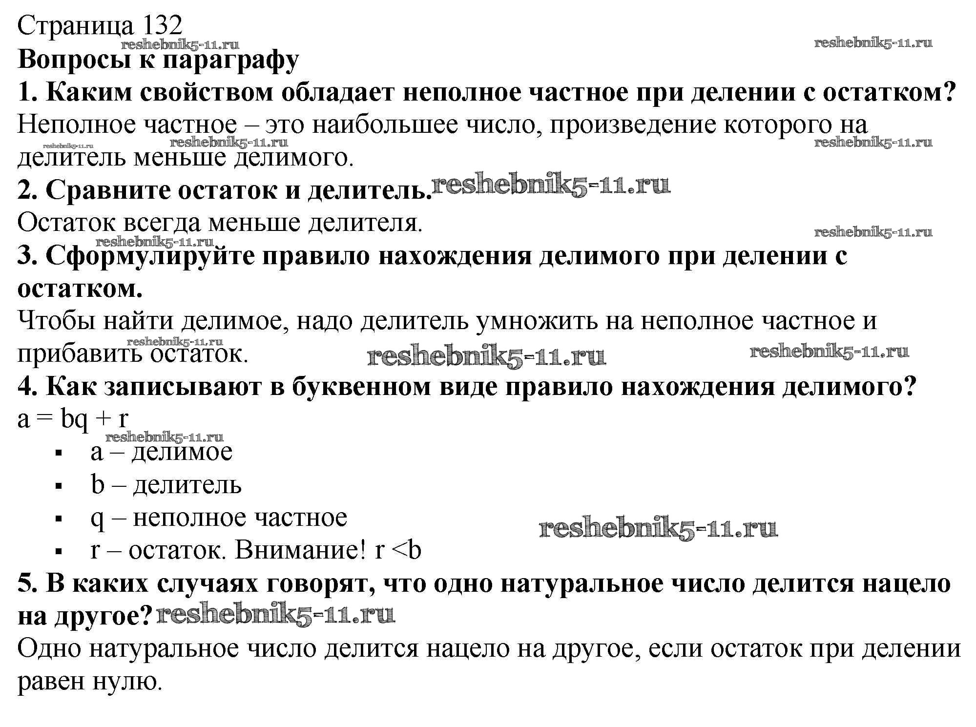 Готовая домашняя работа с ответами по Математике за 5 класс Мерзляк, Полонский, Якир Учебник Алгоритм успеха Вентана-граф 2016 ФГОС - Вопросы (страница 132) страница 132