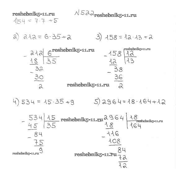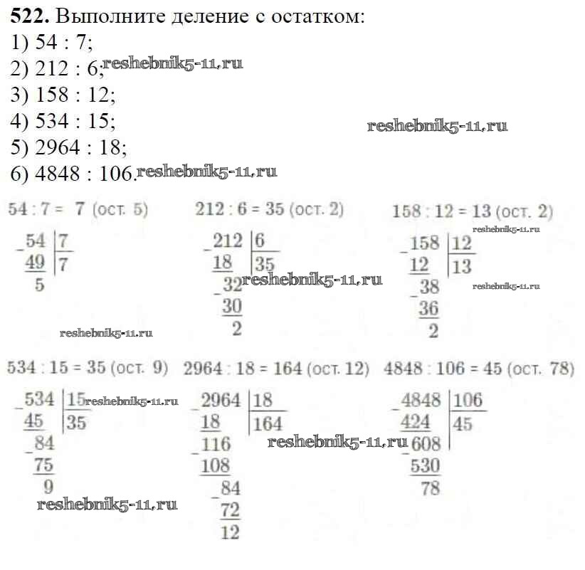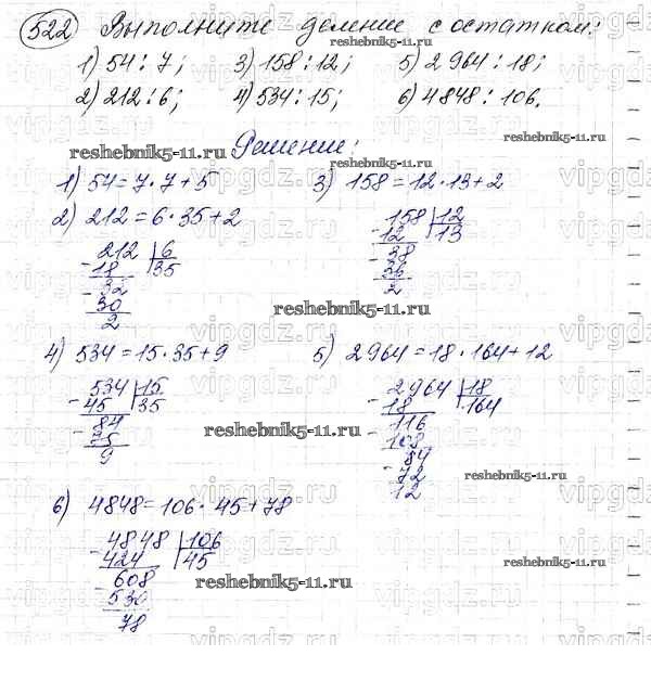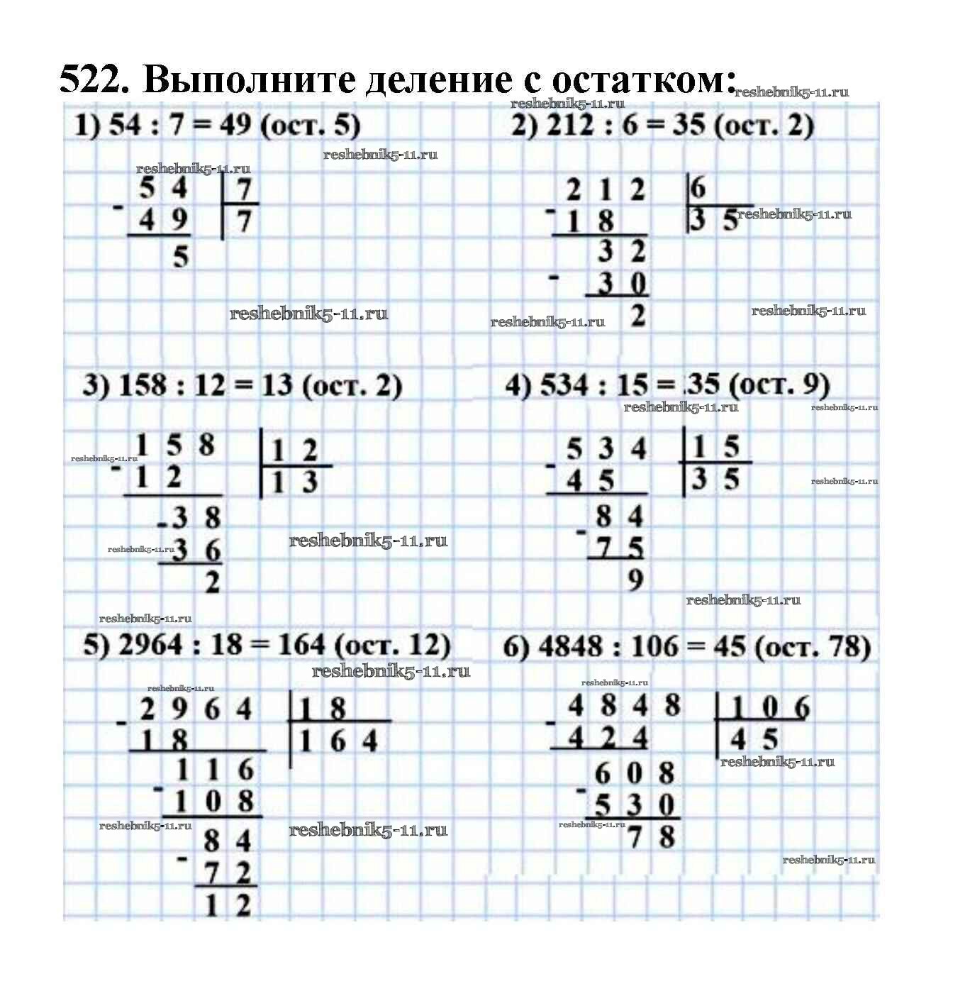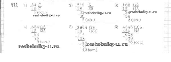 Готовая домашняя работа с ответами по Математике за 5 класс Мерзляк, Полонский, Якир Учебник Алгоритм успеха Вентана-граф 2016 ФГОС - §19. Деление с остатком 522