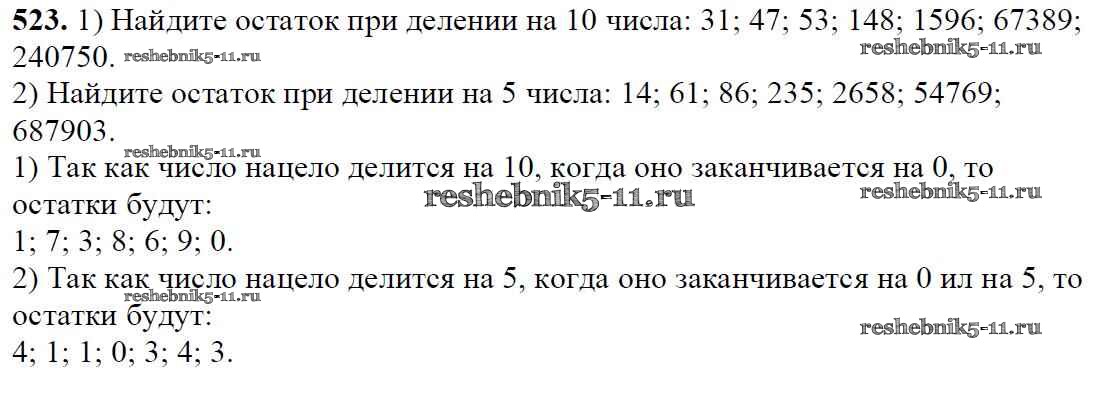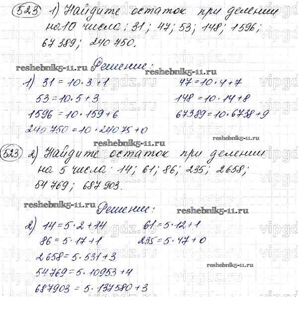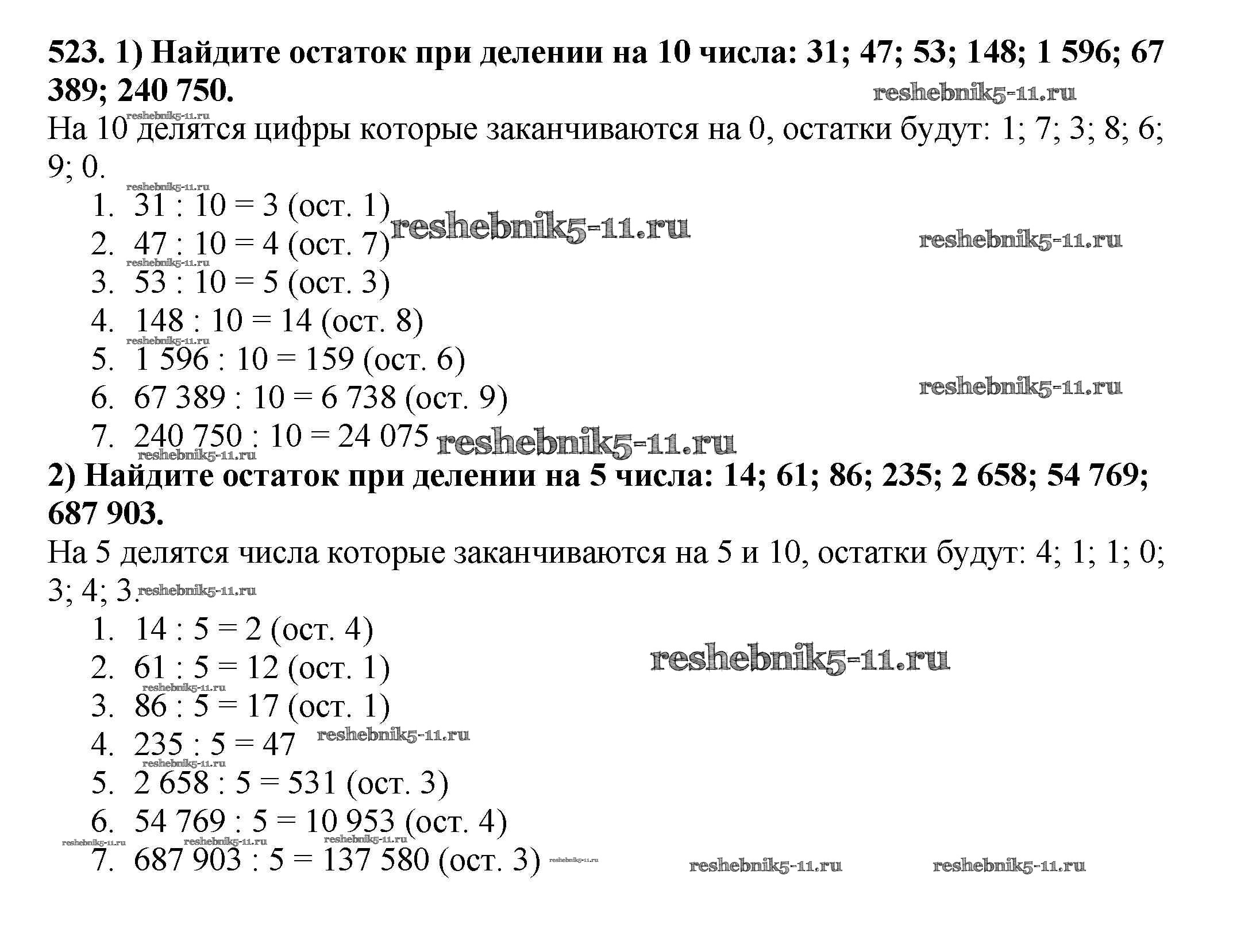 Готовая домашняя работа с ответами по Математике за 5 класс Мерзляк, Полонский, Якир Учебник Алгоритм успеха Вентана-граф 2016 ФГОС - §19. Деление с остатком 523
