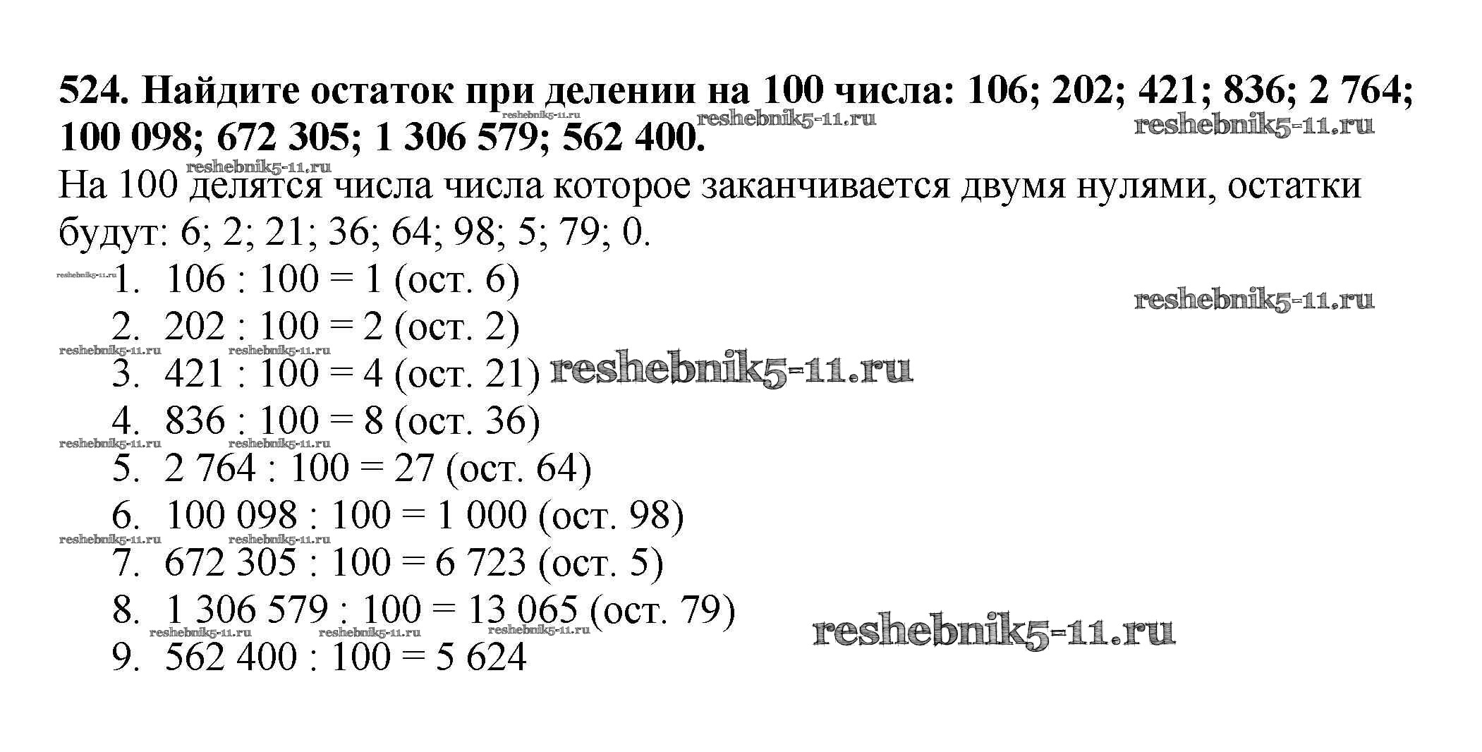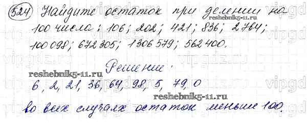 Готовая домашняя работа с ответами по Математике за 5 класс Мерзляк, Полонский, Якир Учебник Алгоритм успеха Вентана-граф 2016 ФГОС - §19. Деление с остатком 524