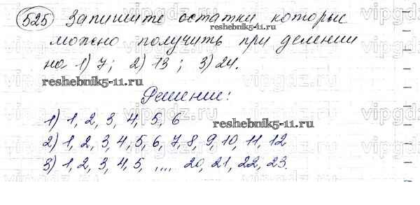 Готовая домашняя работа с ответами по Математике за 5 класс Мерзляк, Полонский, Якир Учебник Алгоритм успеха Вентана-граф 2016 ФГОС - §19. Деление с остатком 525