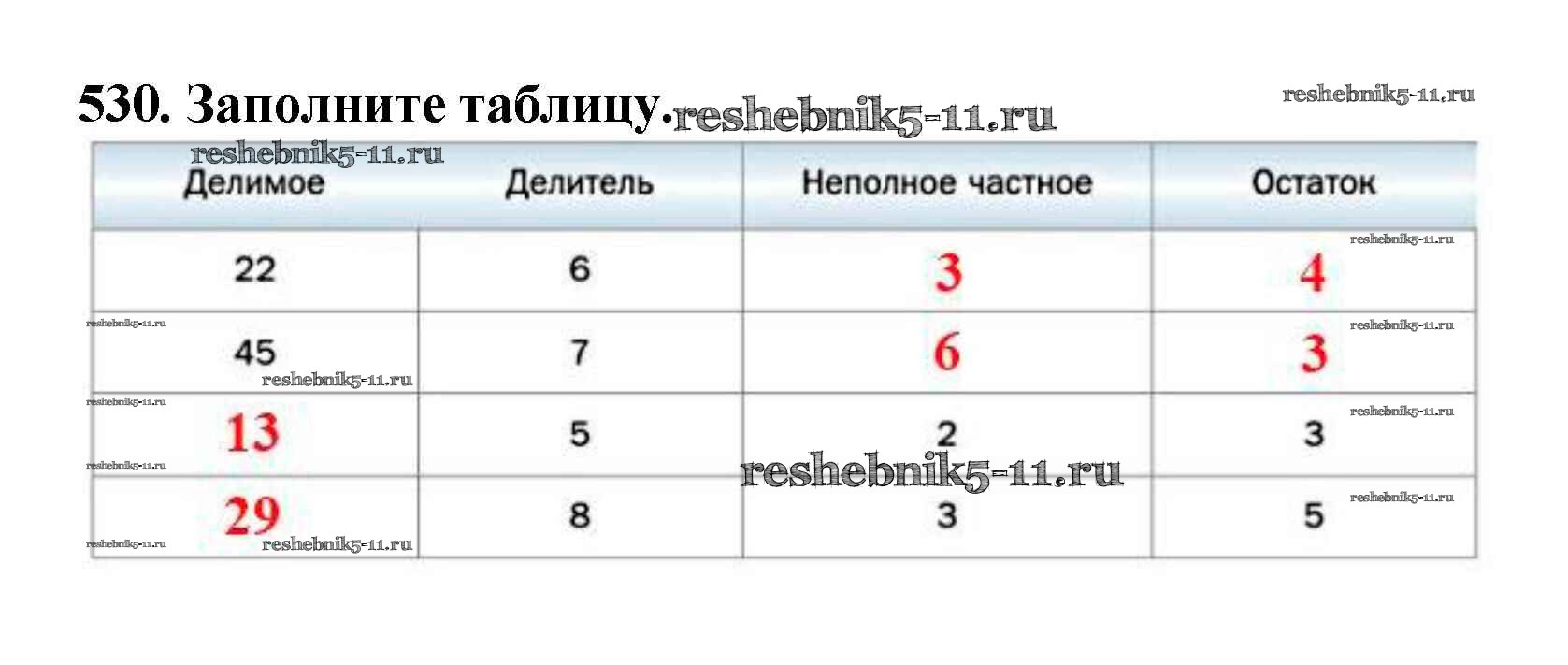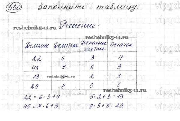 Готовая домашняя работа с ответами по Математике за 5 класс Мерзляк, Полонский, Якир Учебник Алгоритм успеха Вентана-граф 2016 ФГОС - §19. Деление с остатком 530