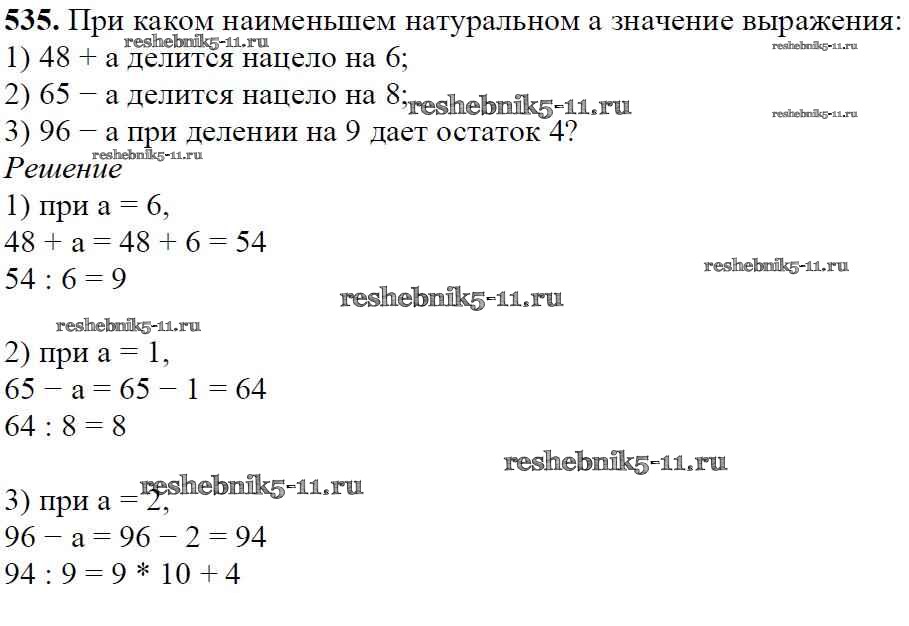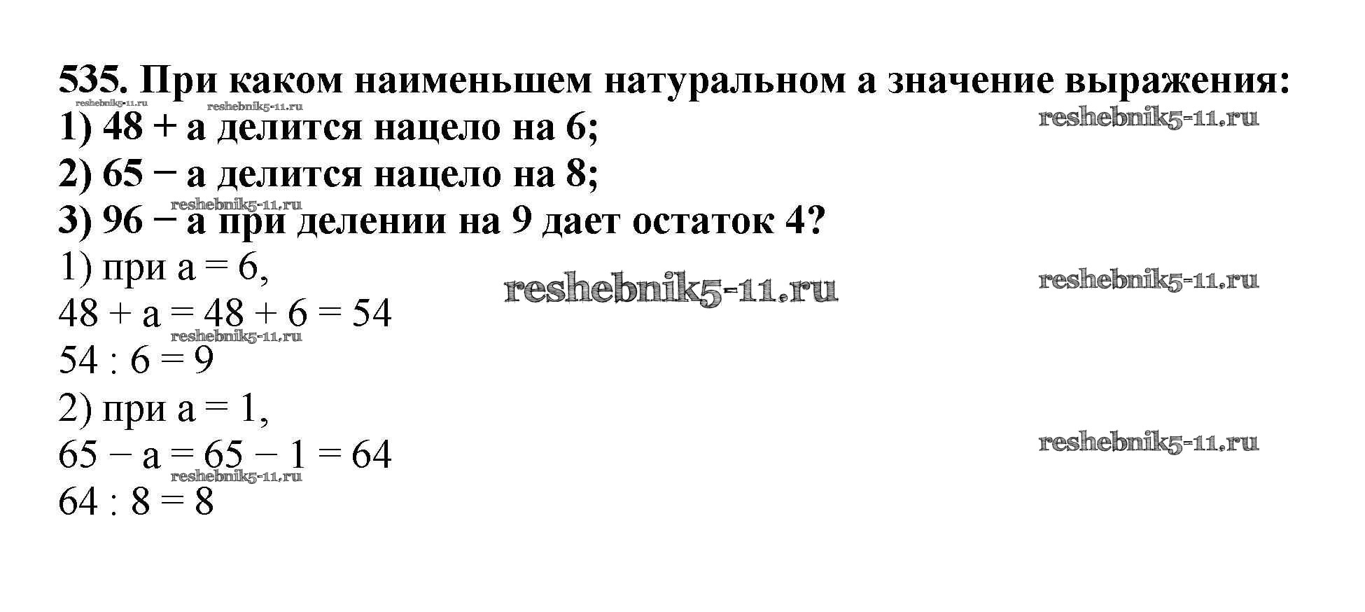 Готовая домашняя работа с ответами по Математике за 5 класс Мерзляк, Полонский, Якир Учебник Алгоритм успеха Вентана-граф 2016 ФГОС - §19. Деление с остатком 535