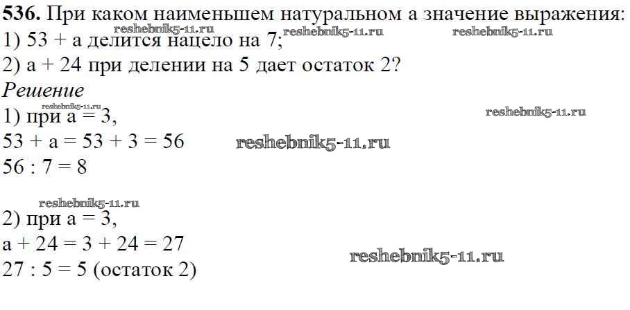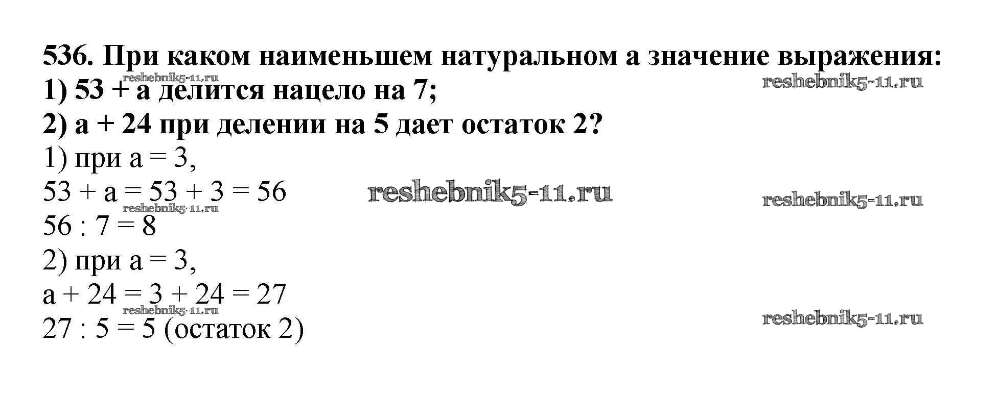 Готовая домашняя работа с ответами по Математике за 5 класс Мерзляк, Полонский, Якир Учебник Алгоритм успеха Вентана-граф 2016 ФГОС - §19. Деление с остатком 536