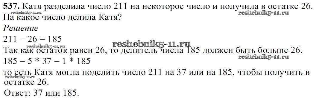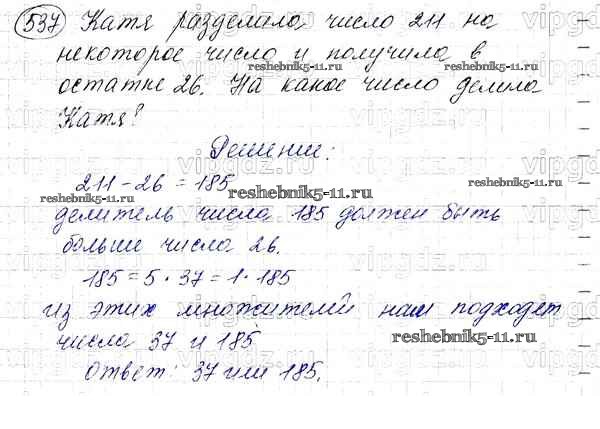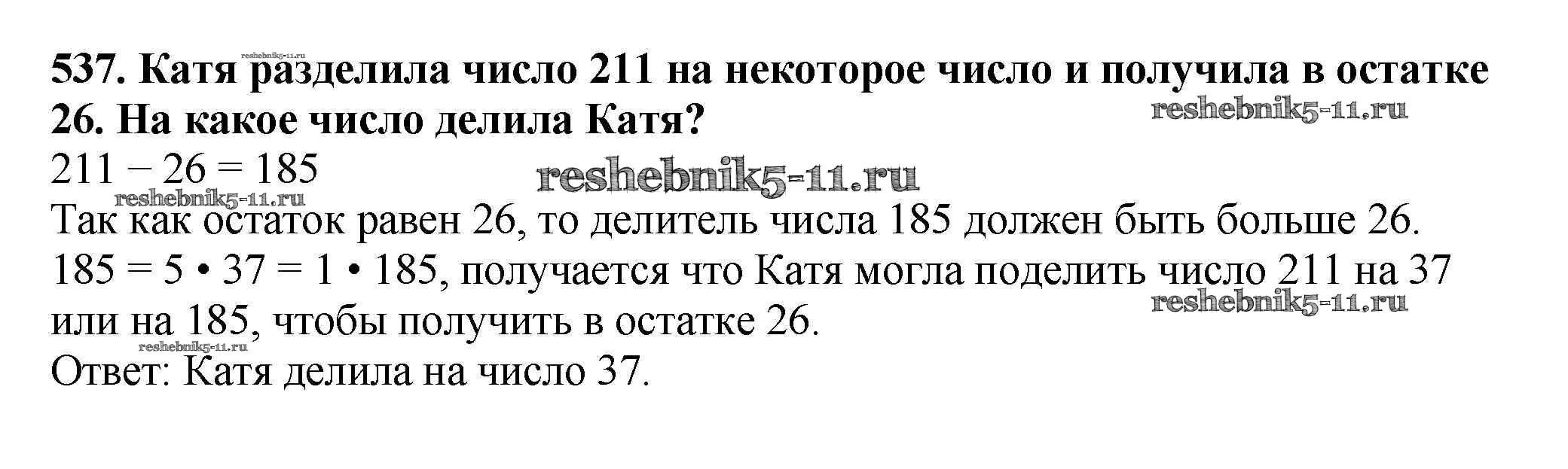 Готовая домашняя работа с ответами по Математике за 5 класс Мерзляк, Полонский, Якир Учебник Алгоритм успеха Вентана-граф 2016 ФГОС - §19. Деление с остатком 537