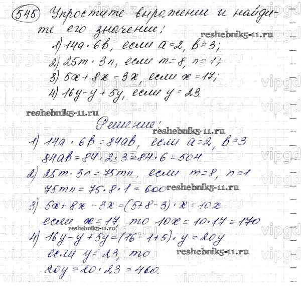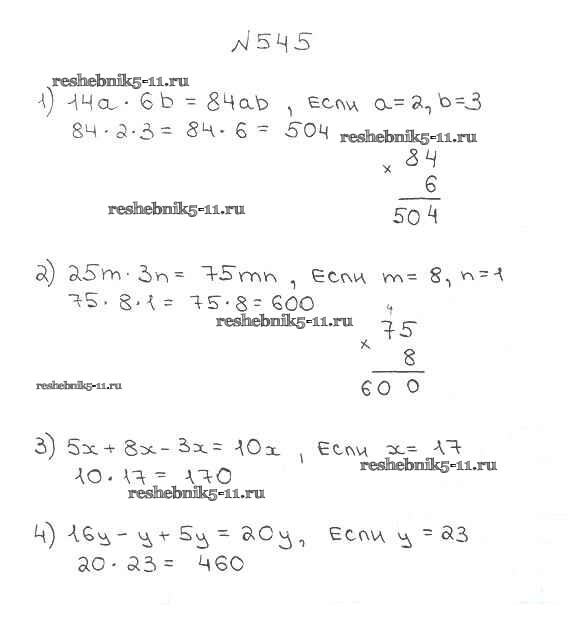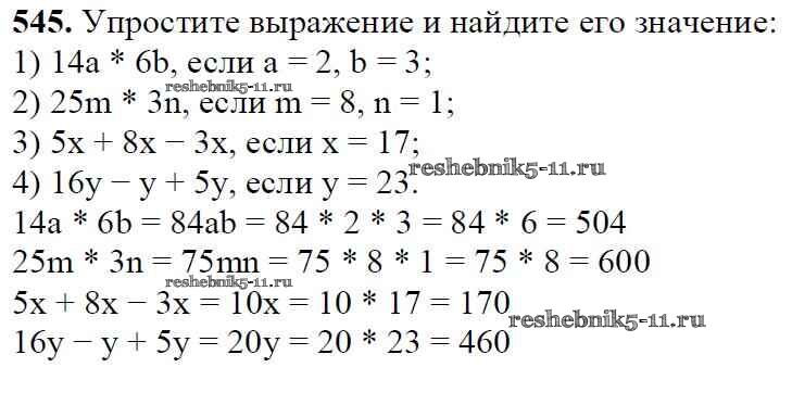 Готовая домашняя работа с ответами по Математике за 5 класс Мерзляк, Полонский, Якир Учебник Алгоритм успеха Вентана-граф 2016 ФГОС - §19. Деление с остатком 545