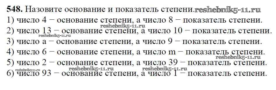 Готовая домашняя работа с ответами по Математике за 5 класс Мерзляк, Полонский, Якир Учебник Алгоритм успеха Вентана-граф 2016 ФГОС - §20. Степень числа 548