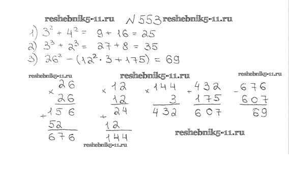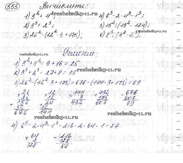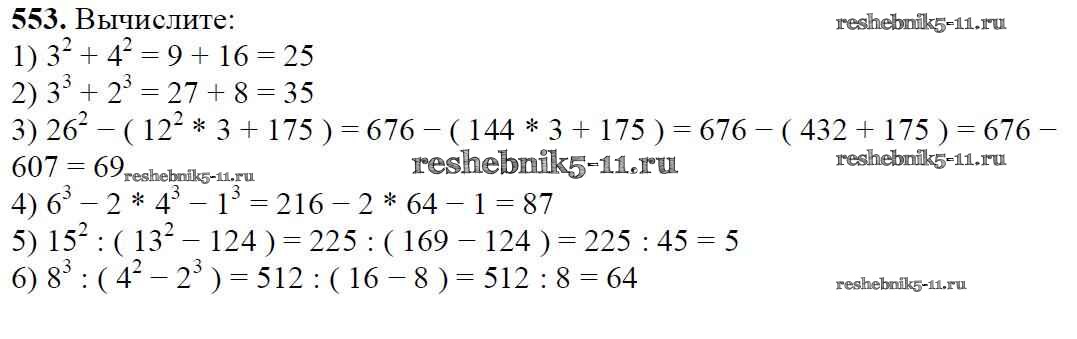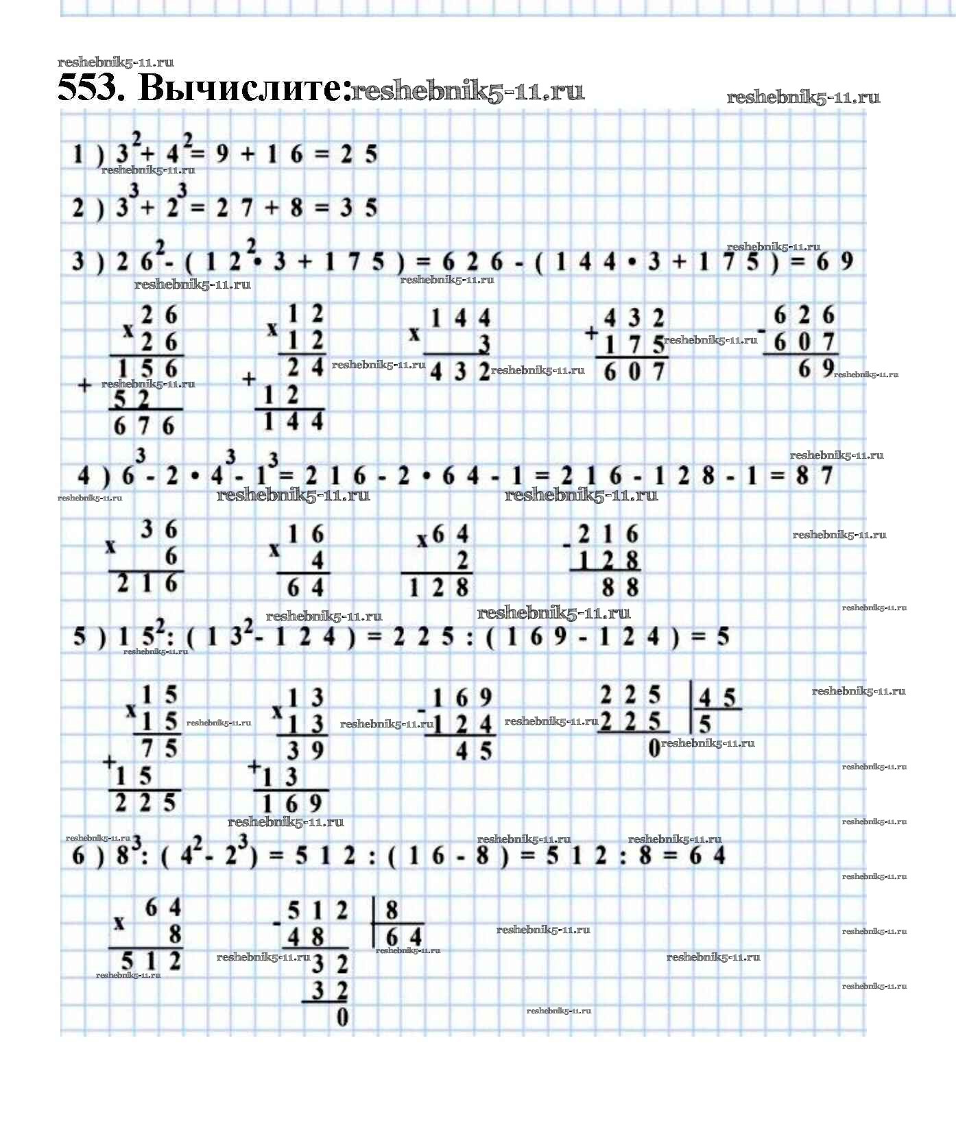 Готовая домашняя работа с ответами по Математике за 5 класс Мерзляк, Полонский, Якир Учебник Алгоритм успеха Вентана-граф 2016 ФГОС - §20. Степень числа 553
