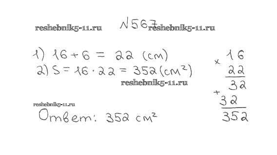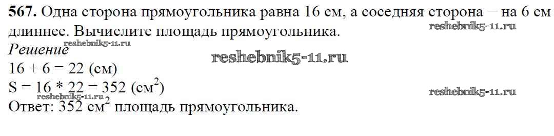 Готовая домашняя работа с ответами по Математике за 5 класс Мерзляк, Полонский, Якир Учебник Алгоритм успеха Вентана-граф 2016 ФГОС - §21. Площадь. Площадь прямоугольника 567