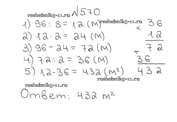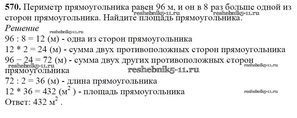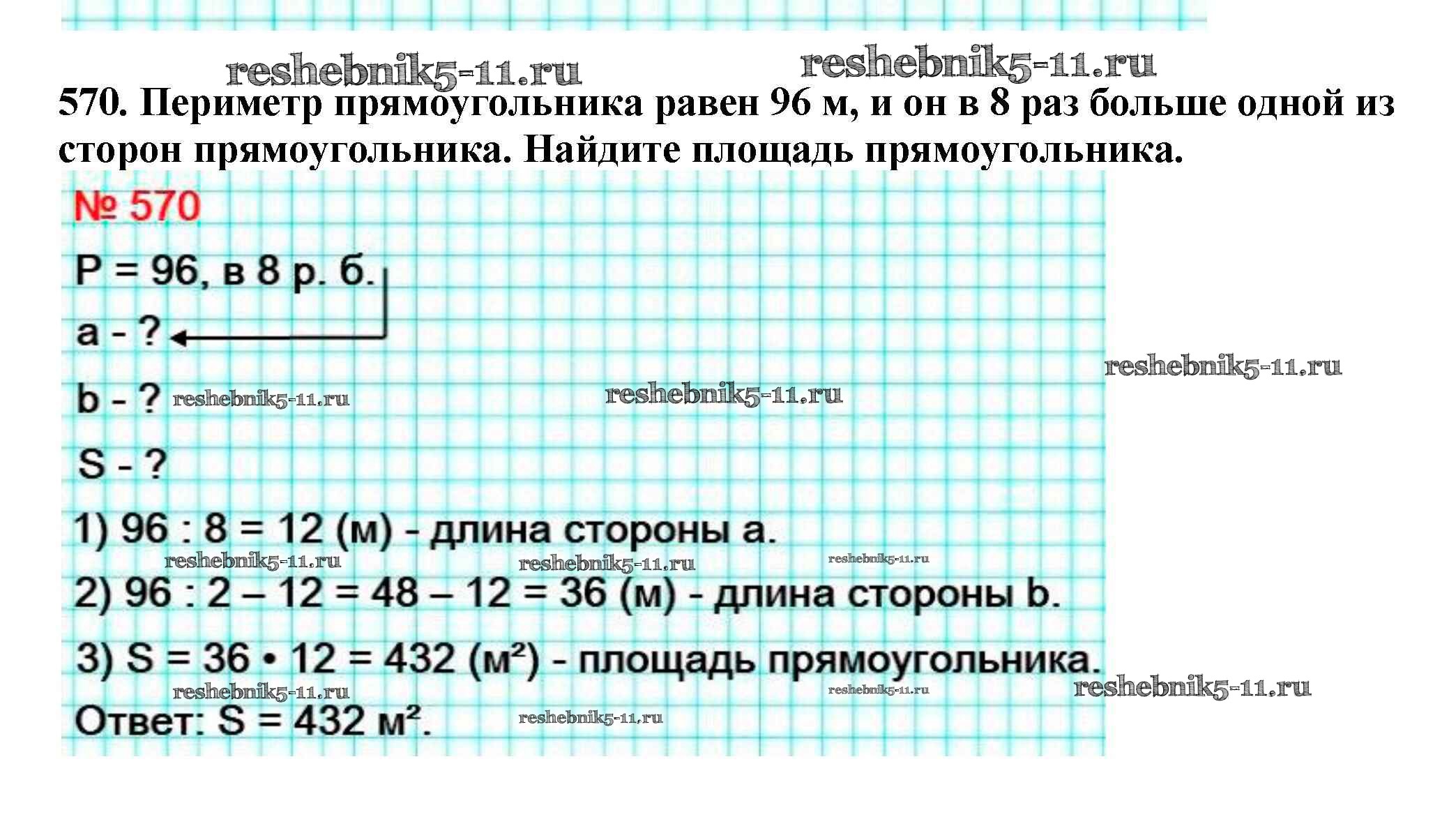 Готовая домашняя работа с ответами по Математике за 5 класс Мерзляк, Полонский, Якир Учебник Алгоритм успеха Вентана-граф 2016 ФГОС - §21. Площадь. Площадь прямоугольника 570