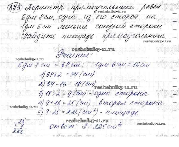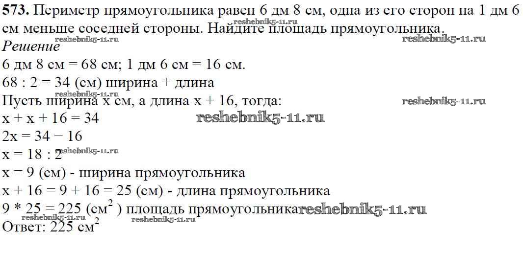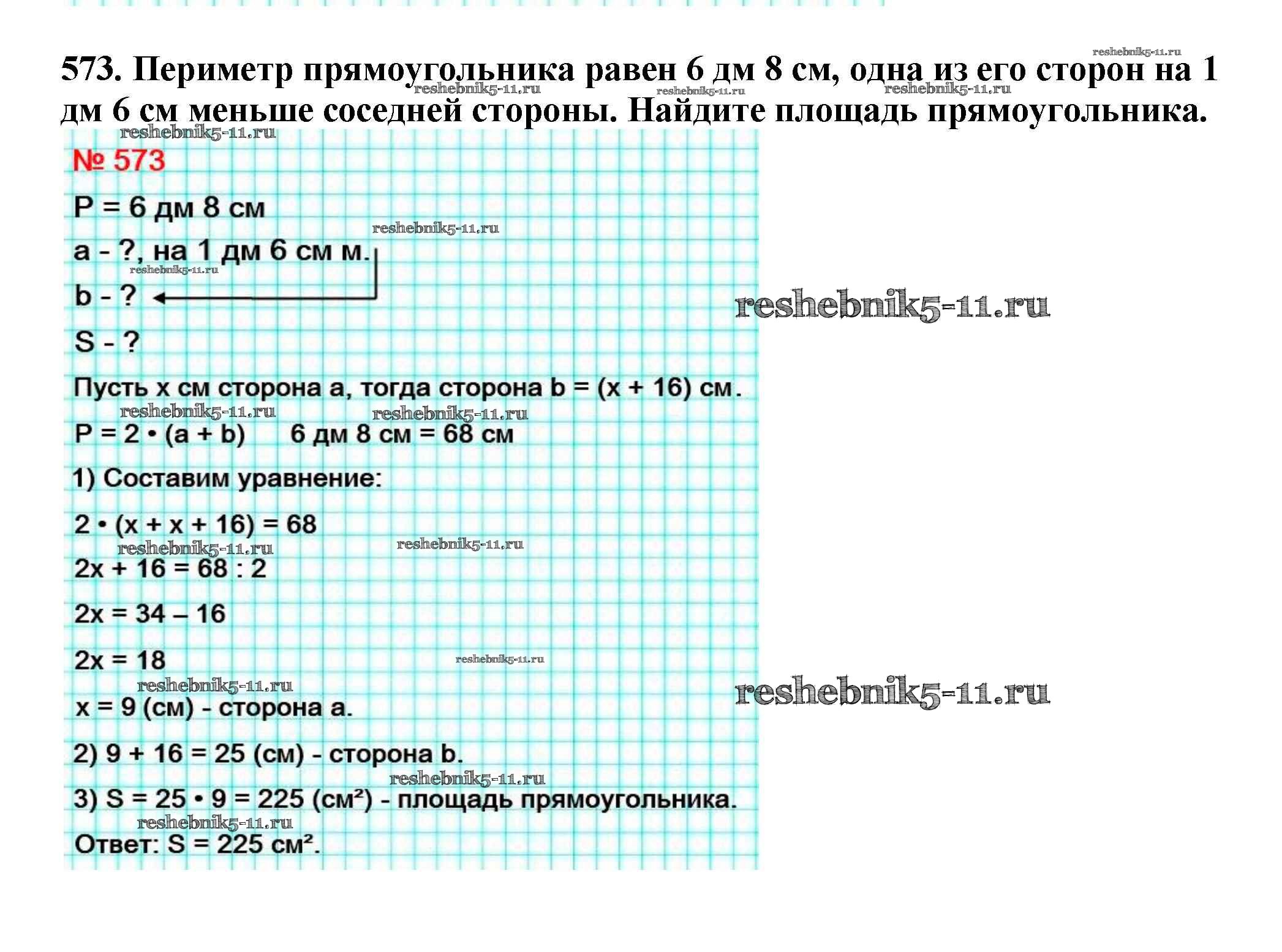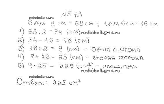 Готовая домашняя работа с ответами по Математике за 5 класс Мерзляк, Полонский, Якир Учебник Алгоритм успеха Вентана-граф 2016 ФГОС - §21. Площадь. Площадь прямоугольника 573