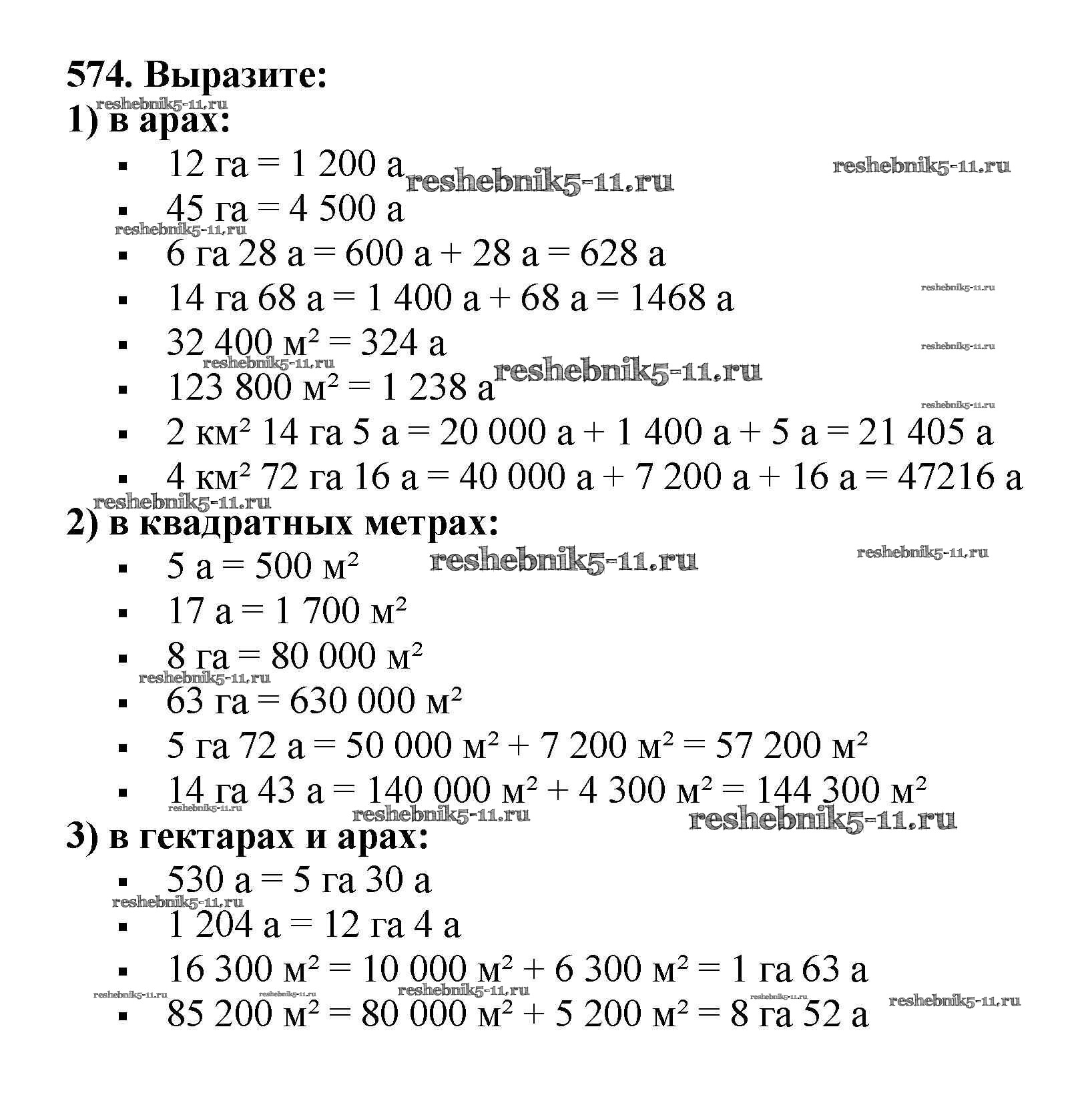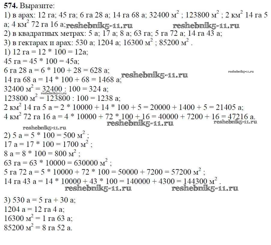 Готовая домашняя работа с ответами по Математике за 5 класс Мерзляк, Полонский, Якир Учебник Алгоритм успеха Вентана-граф 2016 ФГОС - §21. Площадь. Площадь прямоугольника 574