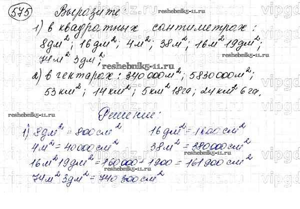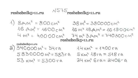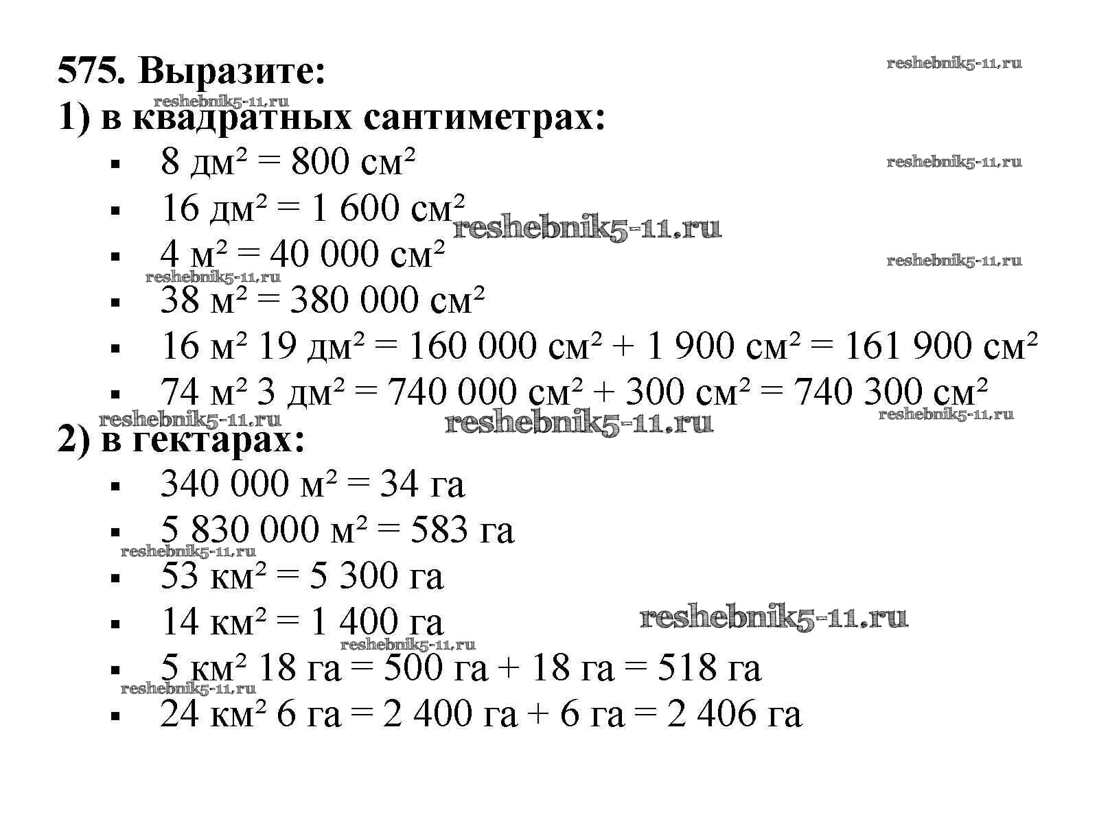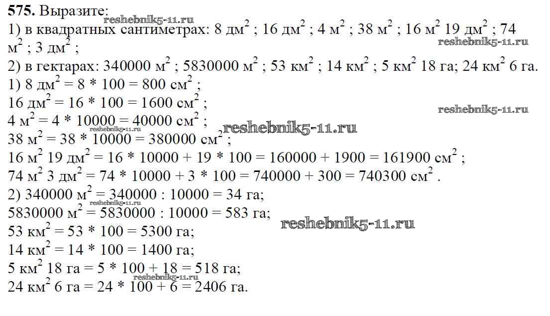 Готовая домашняя работа с ответами по Математике за 5 класс Мерзляк, Полонский, Якир Учебник Алгоритм успеха Вентана-граф 2016 ФГОС - §21. Площадь. Площадь прямоугольника 575