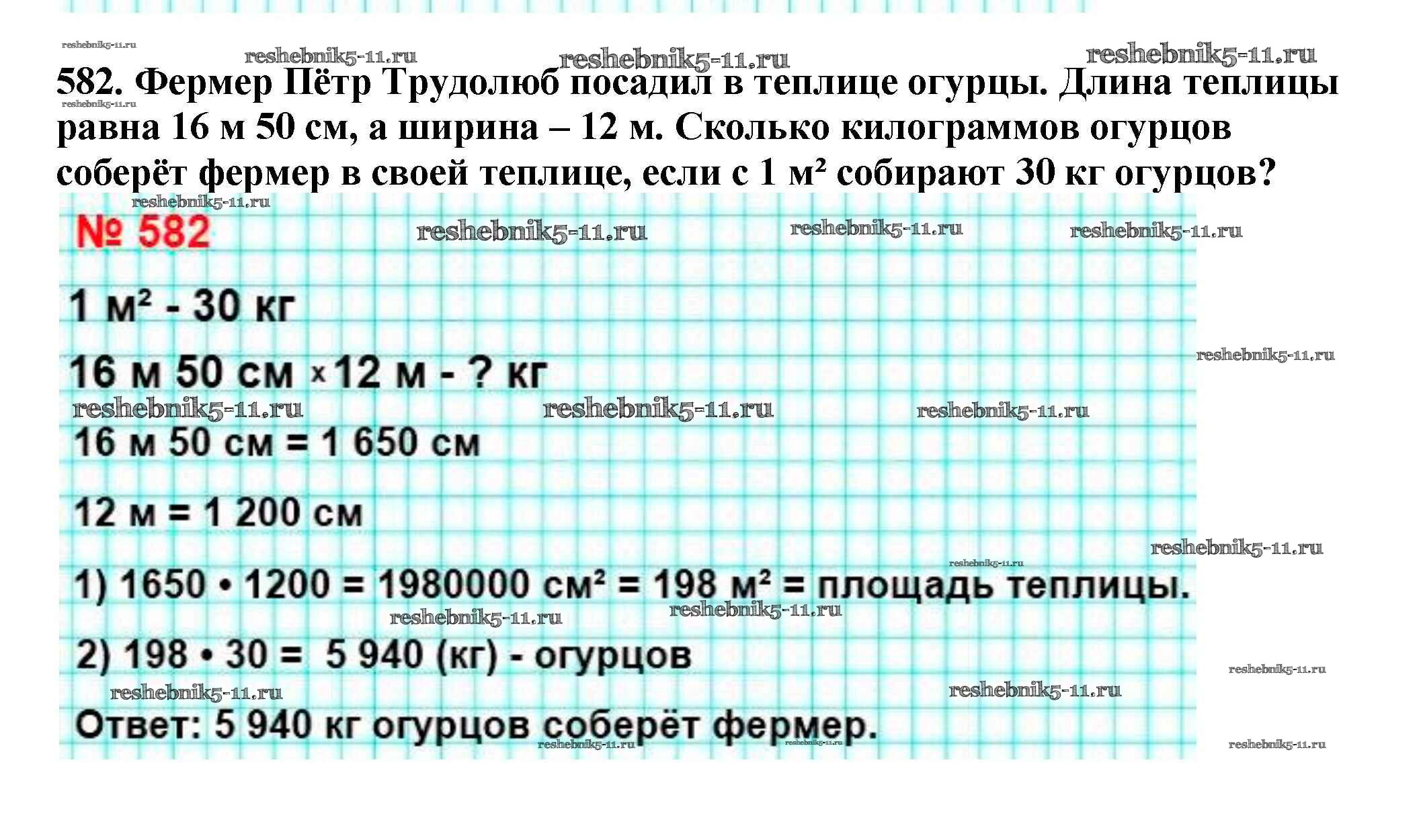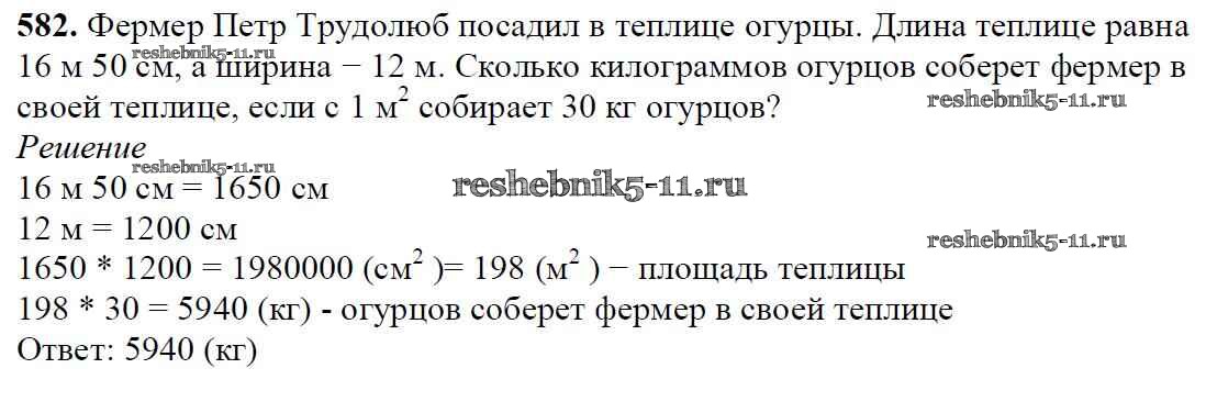 Готовая домашняя работа с ответами по Математике за 5 класс Мерзляк, Полонский, Якир Учебник Алгоритм успеха Вентана-граф 2016 ФГОС - §21. Площадь. Площадь прямоугольника 582