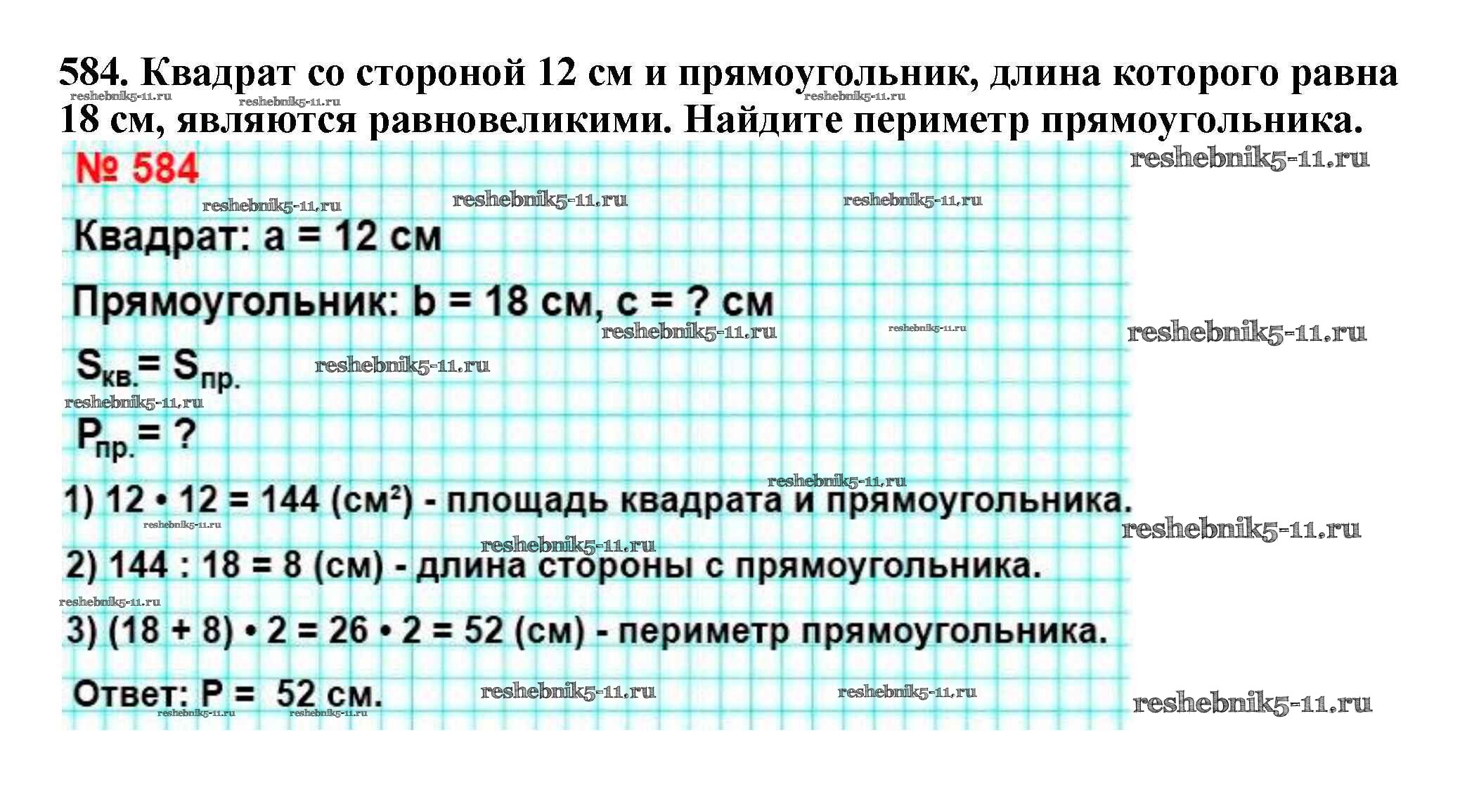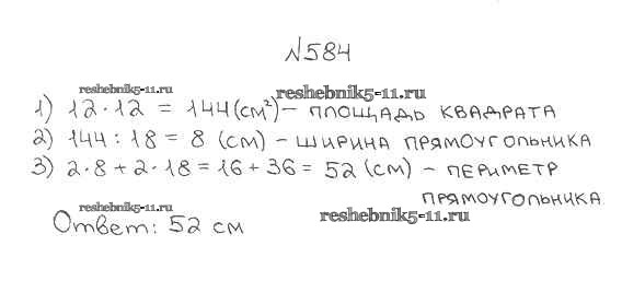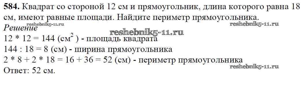 Готовая домашняя работа с ответами по Математике за 5 класс Мерзляк, Полонский, Якир Учебник Алгоритм успеха Вентана-граф 2016 ФГОС - §21. Площадь. Площадь прямоугольника 584
