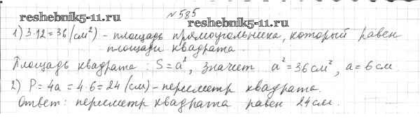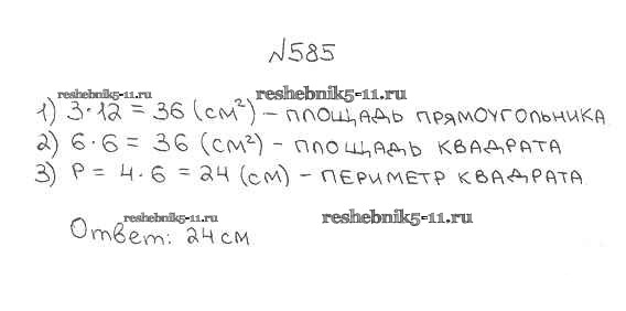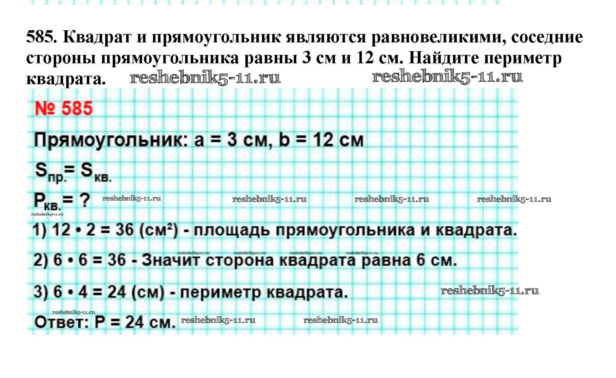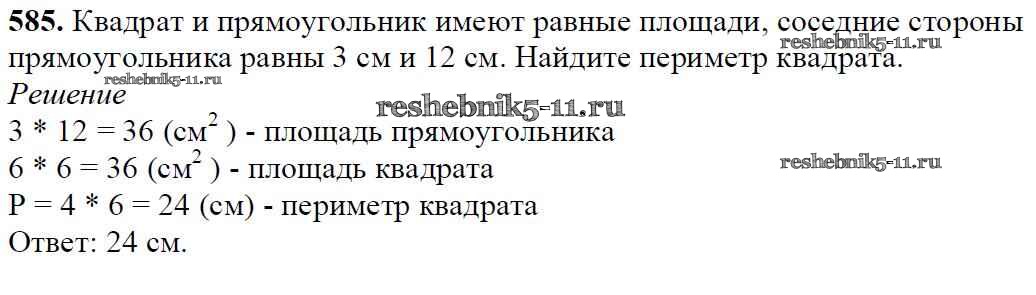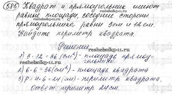 Готовая домашняя работа с ответами по Математике за 5 класс Мерзляк, Полонский, Якир Учебник Алгоритм успеха Вентана-граф 2016 ФГОС - §21. Площадь. Площадь прямоугольника 585