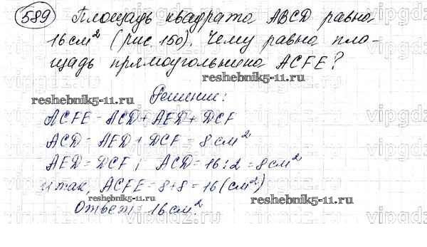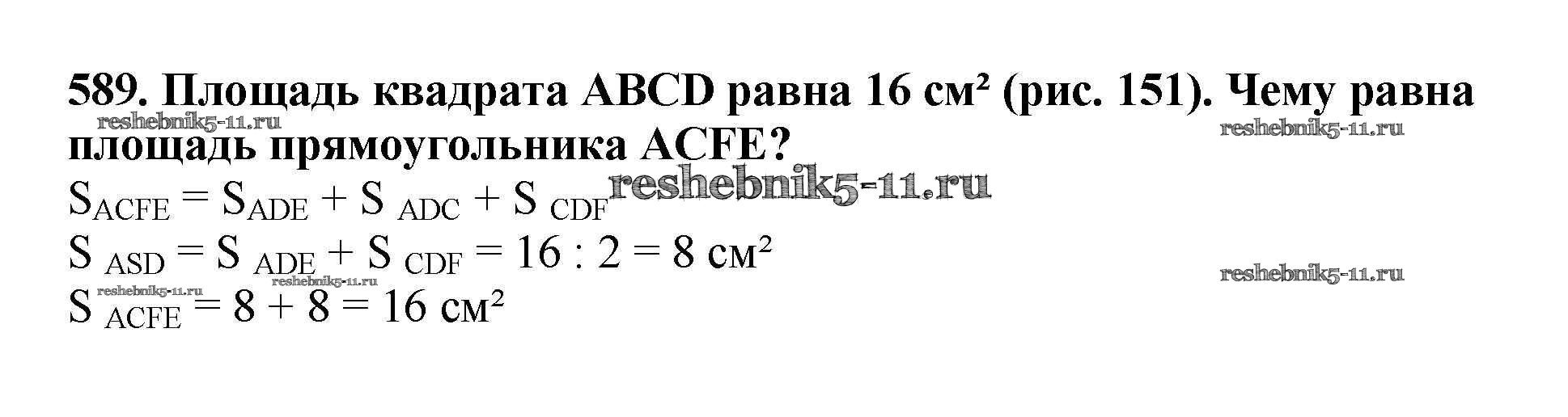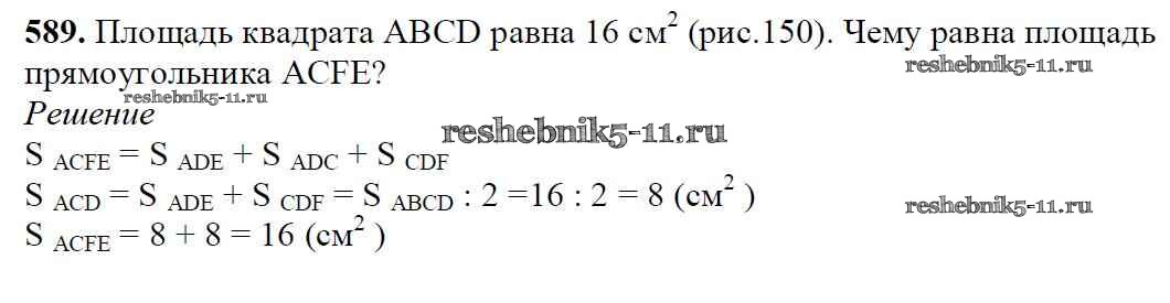 Готовая домашняя работа с ответами по Математике за 5 класс Мерзляк, Полонский, Якир Учебник Алгоритм успеха Вентана-граф 2016 ФГОС - §21. Площадь. Площадь прямоугольника 589