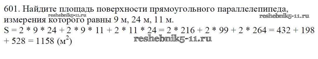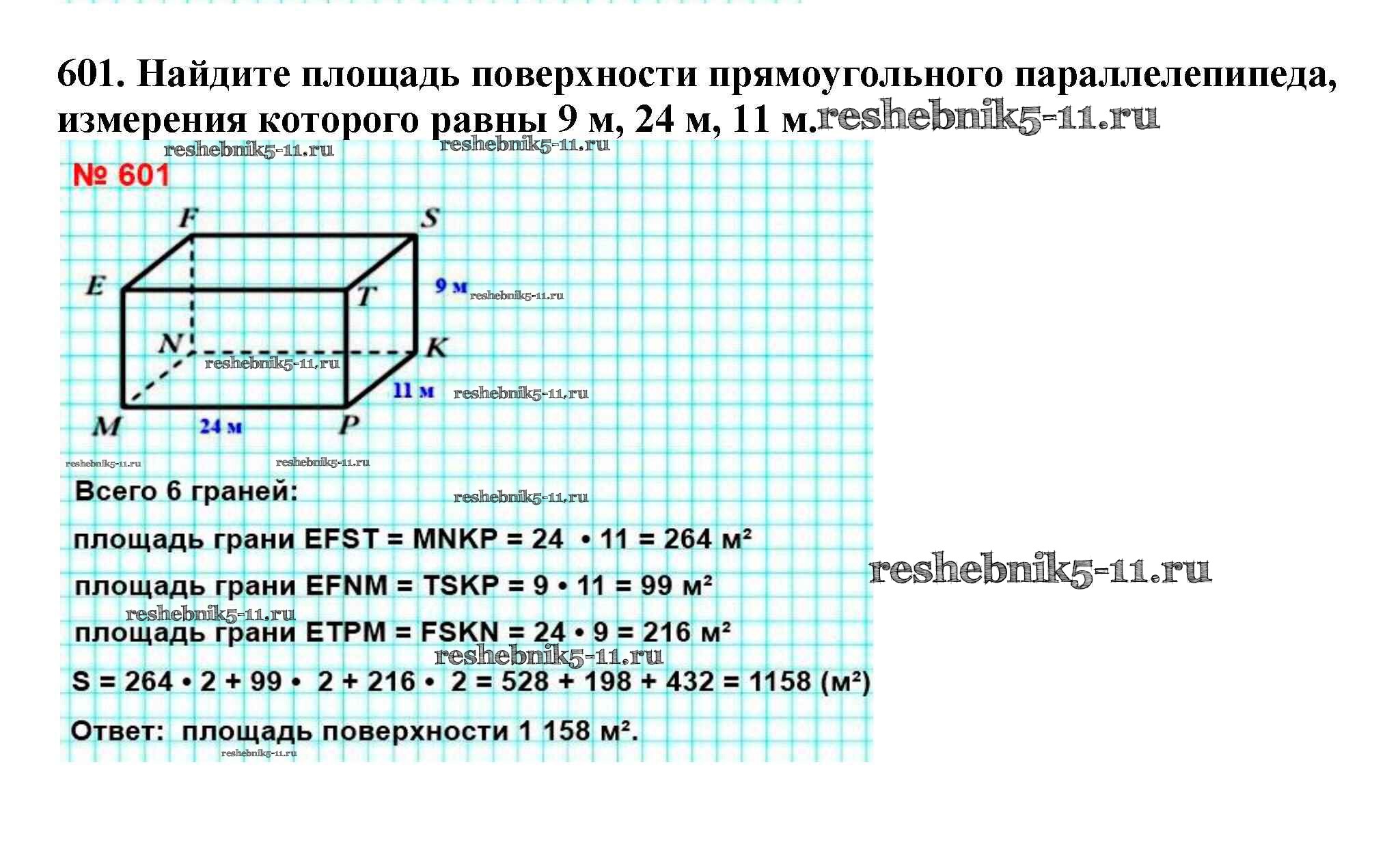 Готовая домашняя работа с ответами по Математике за 5 класс Мерзляк, Полонский, Якир Учебник Алгоритм успеха Вентана-граф 2016 ФГОС - §22. Прямоугольный параллелепипед. Пирамида 601
