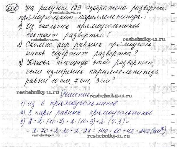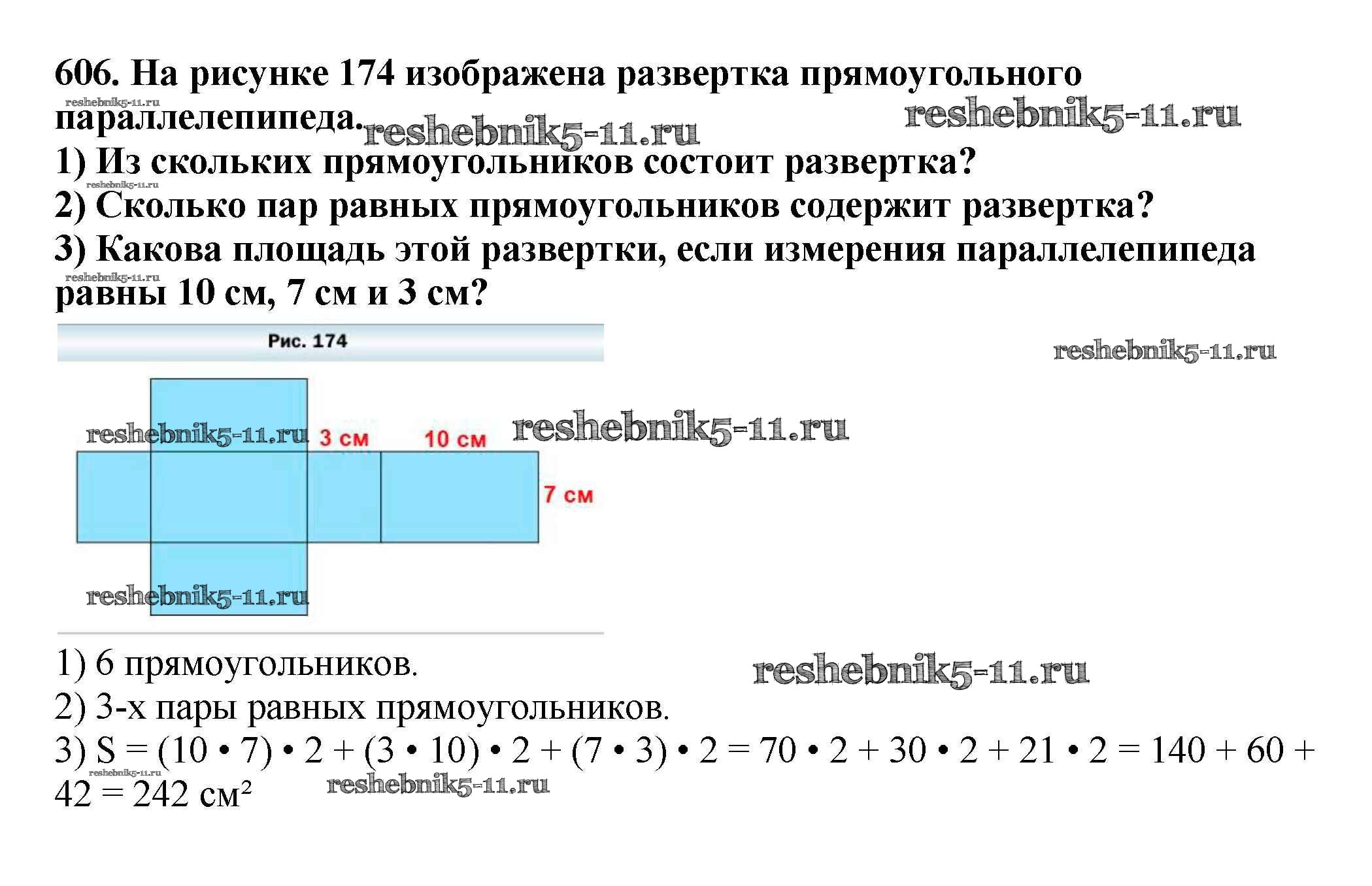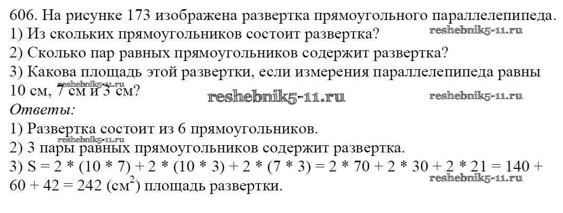Готовая домашняя работа с ответами по Математике за 5 класс Мерзляк, Полонский, Якир Учебник Алгоритм успеха Вентана-граф 2016 ФГОС - §22. Прямоугольный параллелепипед. Пирамида 606