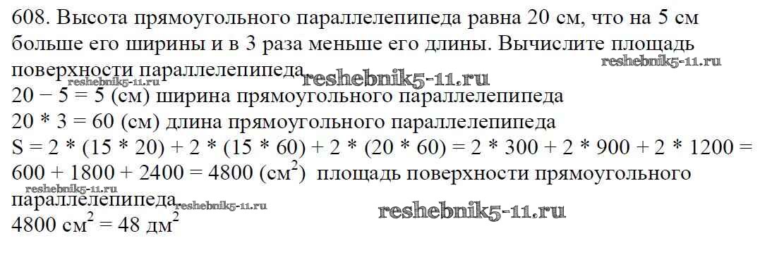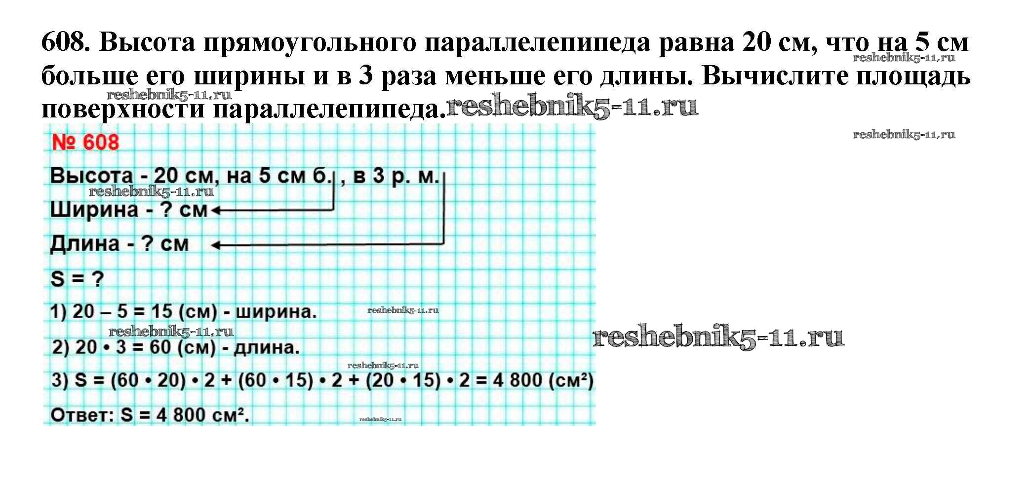 Готовая домашняя работа с ответами по Математике за 5 класс Мерзляк, Полонский, Якир Учебник Алгоритм успеха Вентана-граф 2016 ФГОС - §22. Прямоугольный параллелепипед. Пирамида 608