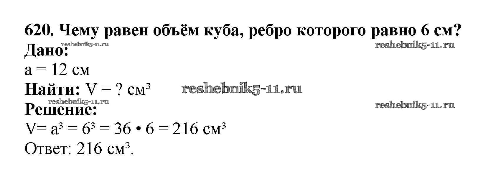 Готовая домашняя работа с ответами по Математике за 5 класс Мерзляк, Полонский, Якир Учебник Алгоритм успеха Вентана-граф 2016 ФГОС - §23. Объём прямоугольного параллелепипеда 620