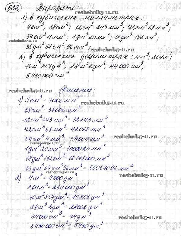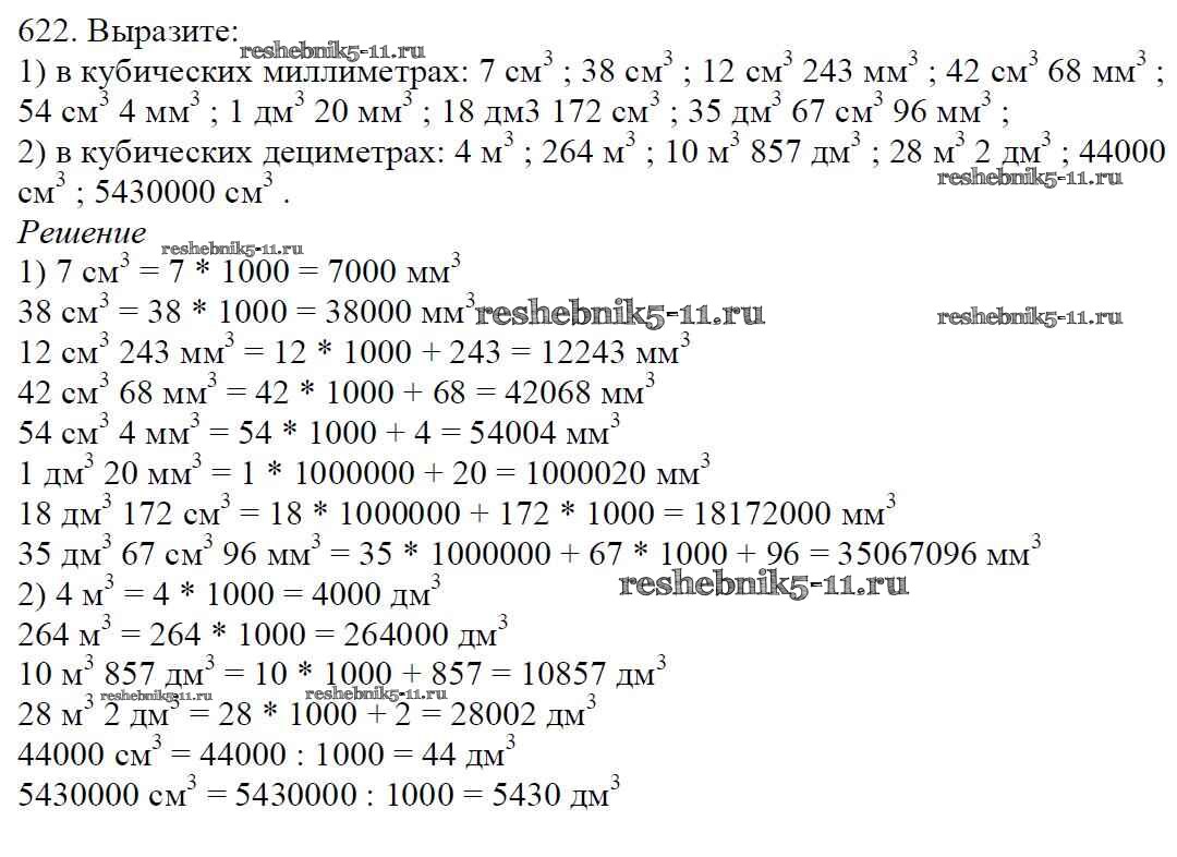 Готовая домашняя работа с ответами по Математике за 5 класс Мерзляк, Полонский, Якир Учебник Алгоритм успеха Вентана-граф 2016 ФГОС - §23. Объём прямоугольного параллелепипеда 622
