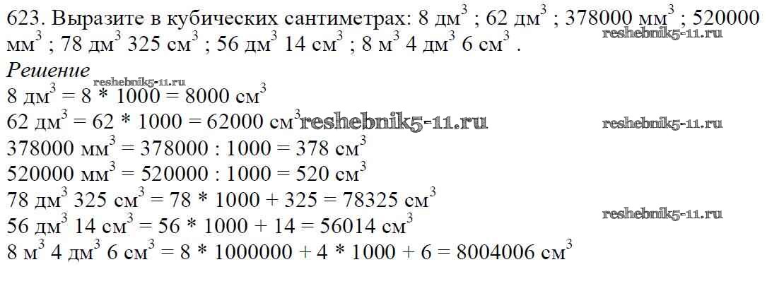 Готовая домашняя работа с ответами по Математике за 5 класс Мерзляк, Полонский, Якир Учебник Алгоритм успеха Вентана-граф 2016 ФГОС - §23. Объём прямоугольного параллелепипеда 623
