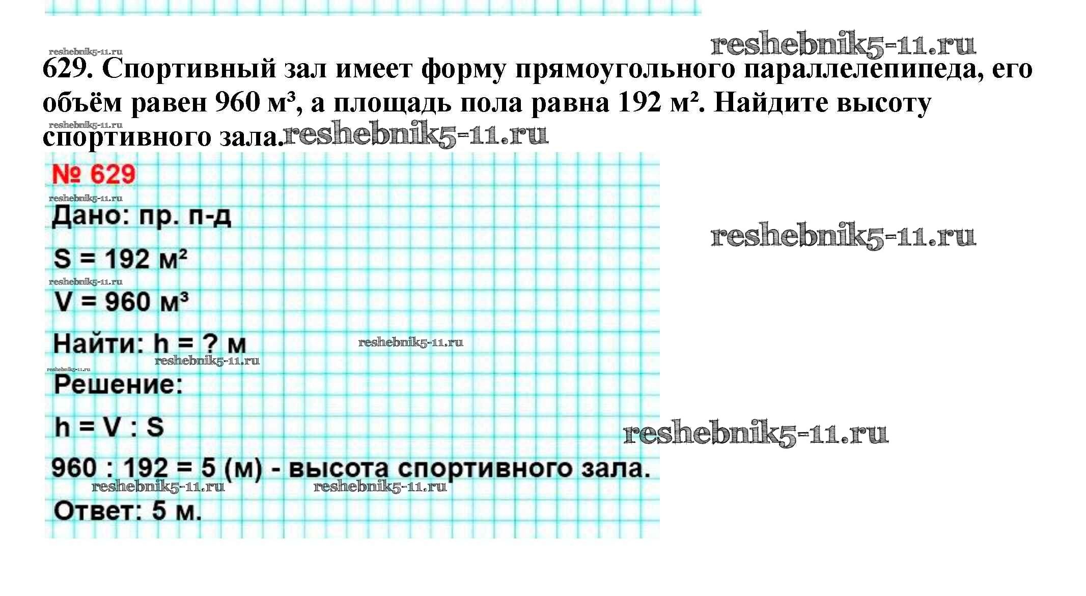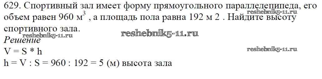 Готовая домашняя работа с ответами по Математике за 5 класс Мерзляк, Полонский, Якир Учебник Алгоритм успеха Вентана-граф 2016 ФГОС - §23. Объём прямоугольного параллелепипеда 629