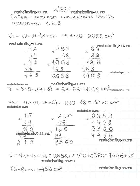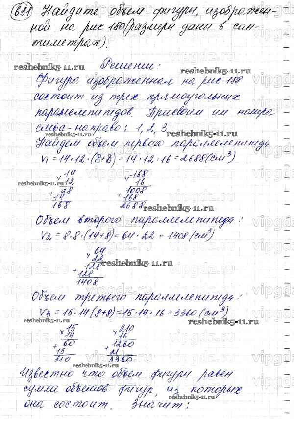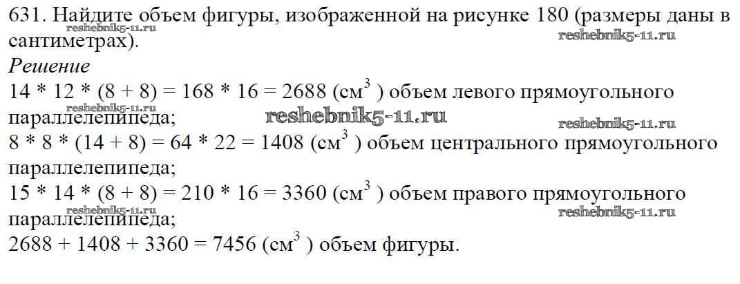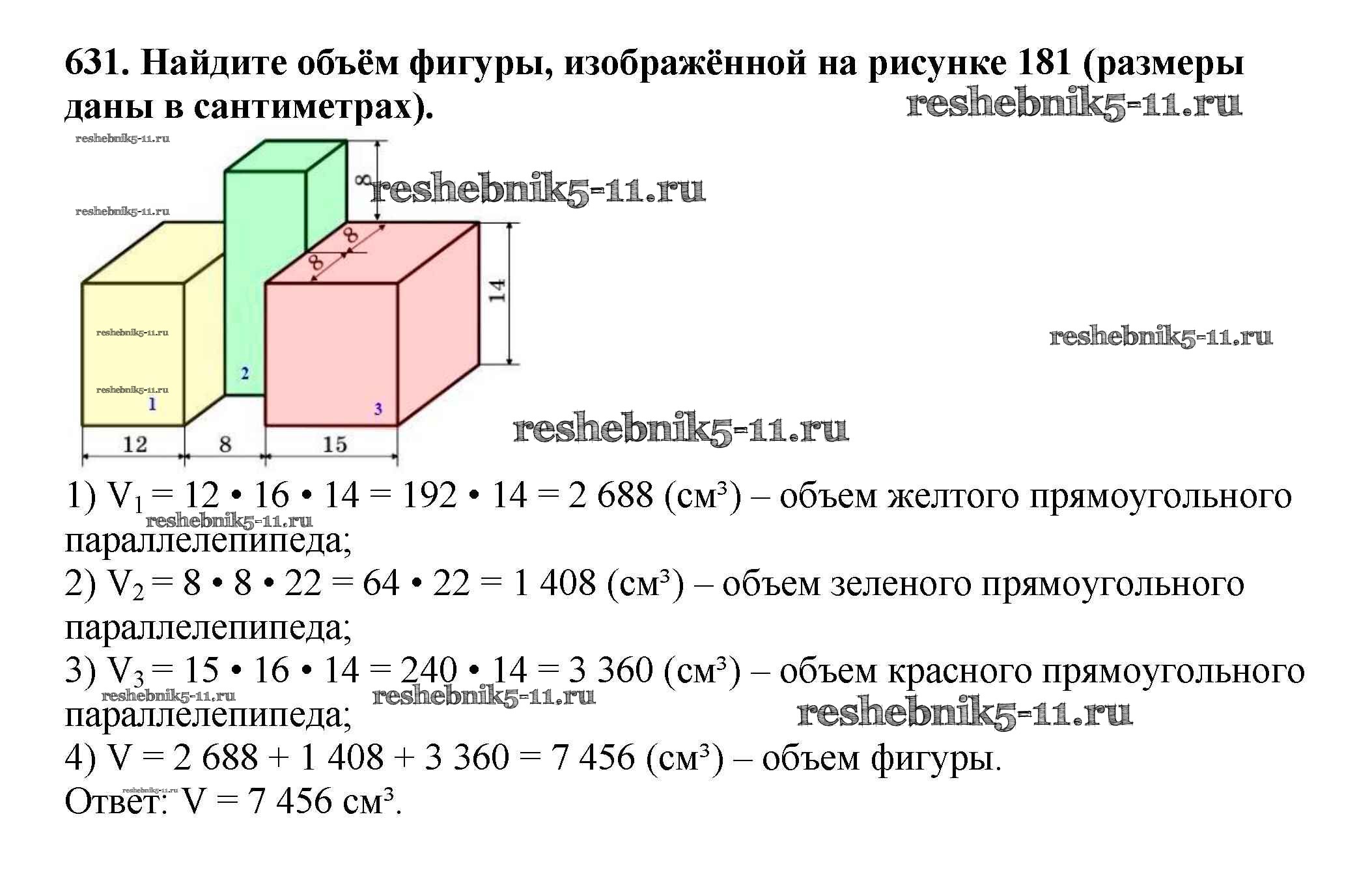 Готовая домашняя работа с ответами по Математике за 5 класс Мерзляк, Полонский, Якир Учебник Алгоритм успеха Вентана-граф 2016 ФГОС - §23. Объём прямоугольного параллелепипеда 631