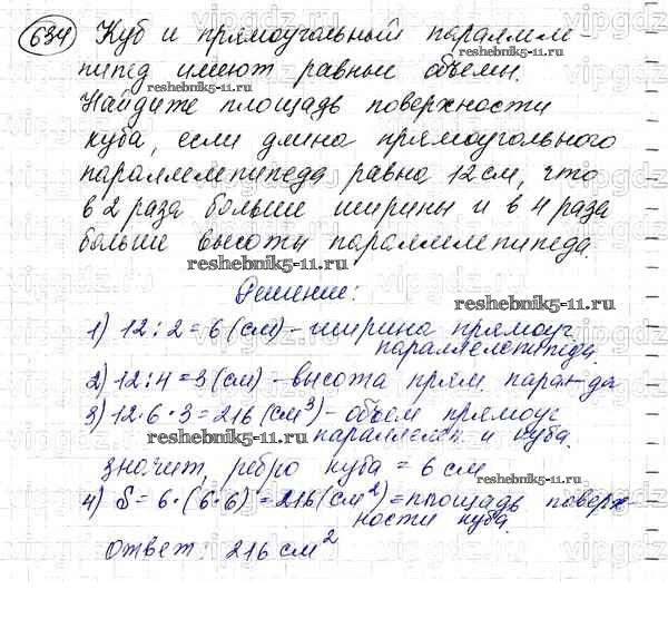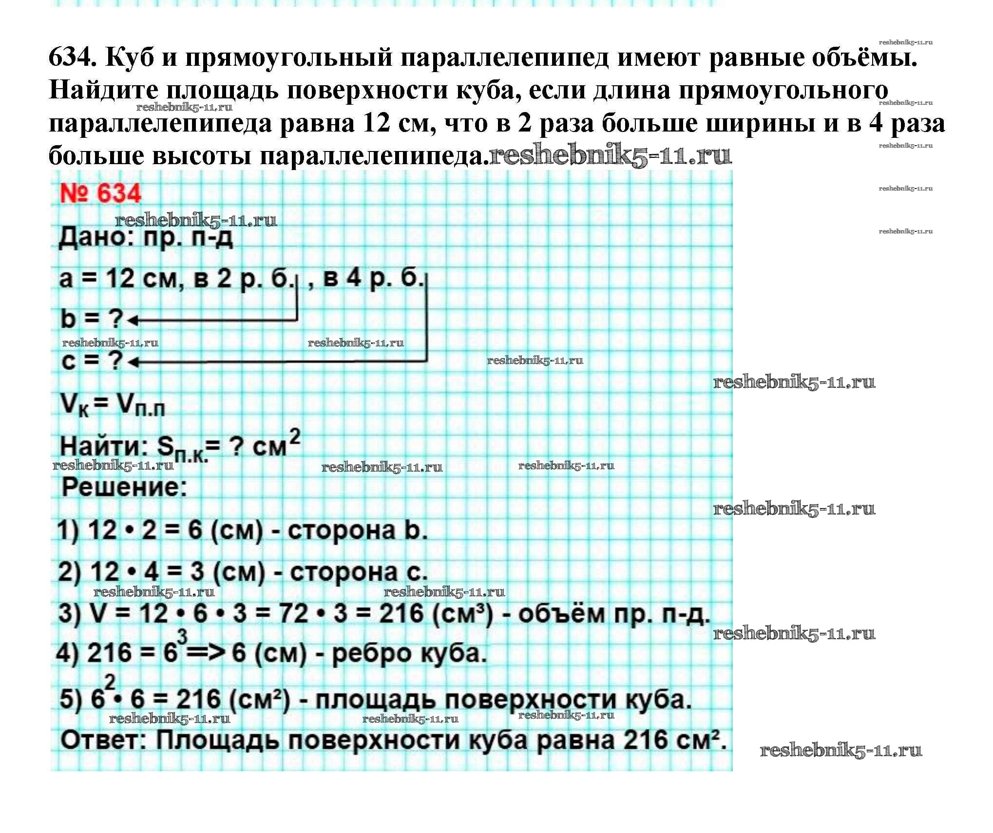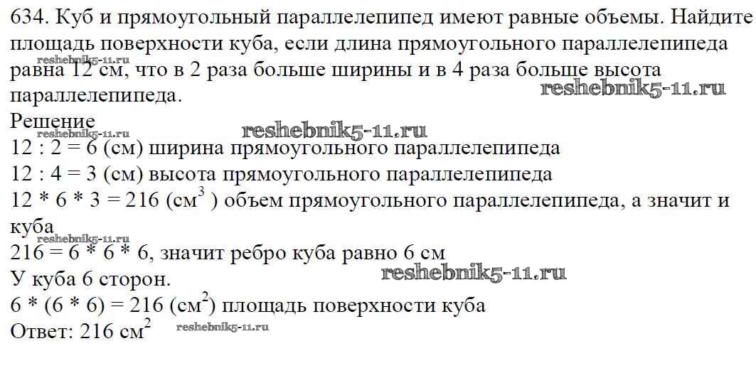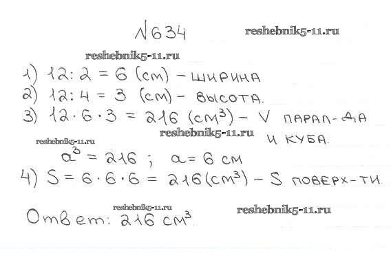 Готовая домашняя работа с ответами по Математике за 5 класс Мерзляк, Полонский, Якир Учебник Алгоритм успеха Вентана-граф 2016 ФГОС - §23. Объём прямоугольного параллелепипеда 634