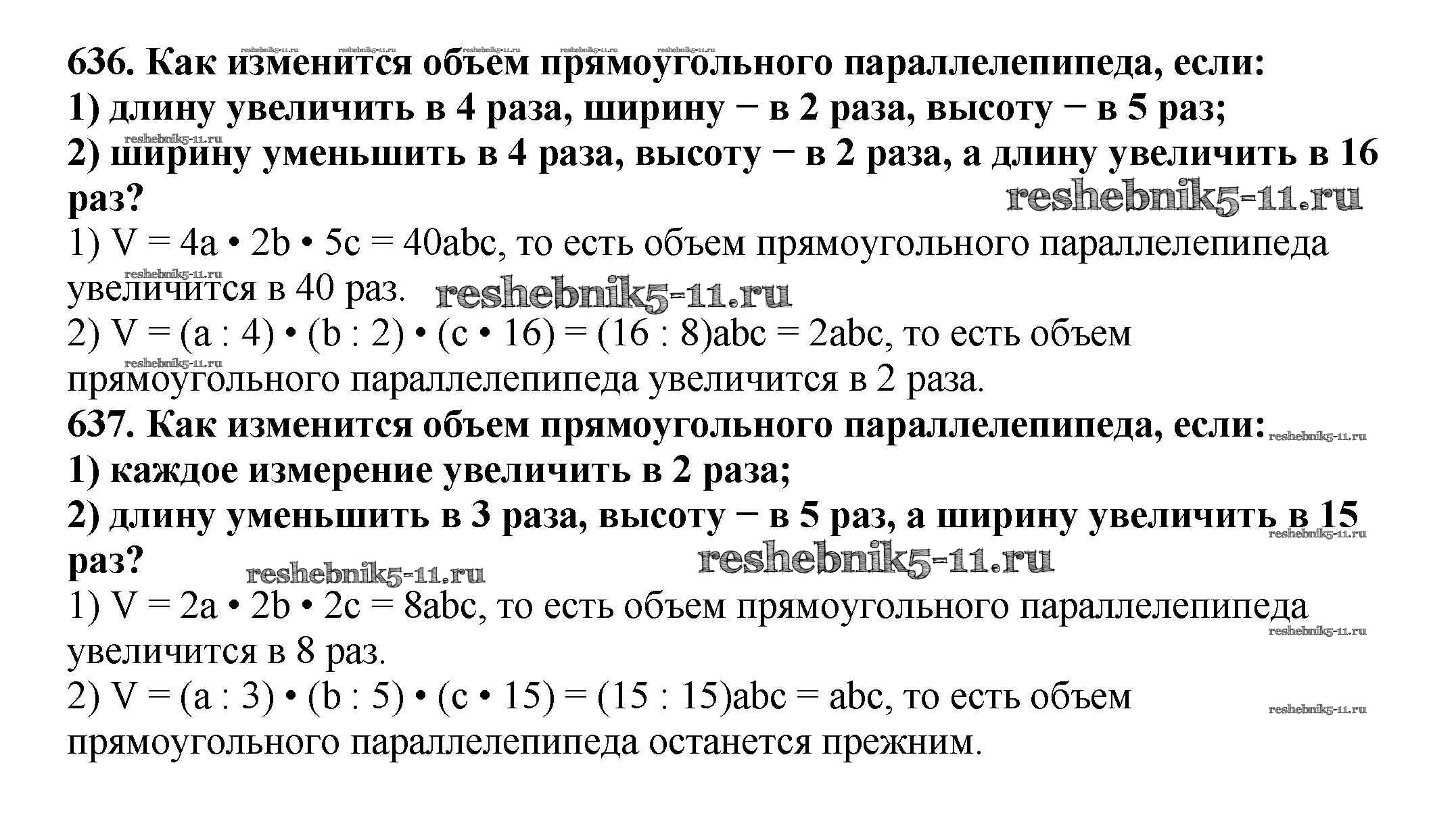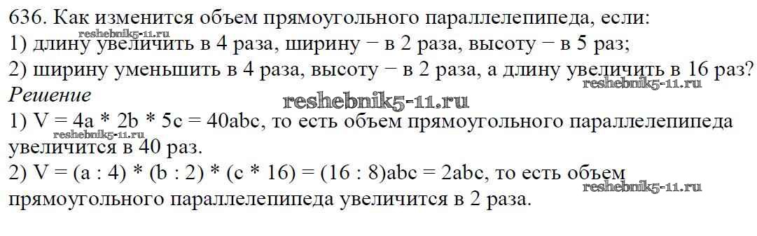 Готовая домашняя работа с ответами по Математике за 5 класс Мерзляк, Полонский, Якир Учебник Алгоритм успеха Вентана-граф 2016 ФГОС - §23. Объём прямоугольного параллелепипеда 636