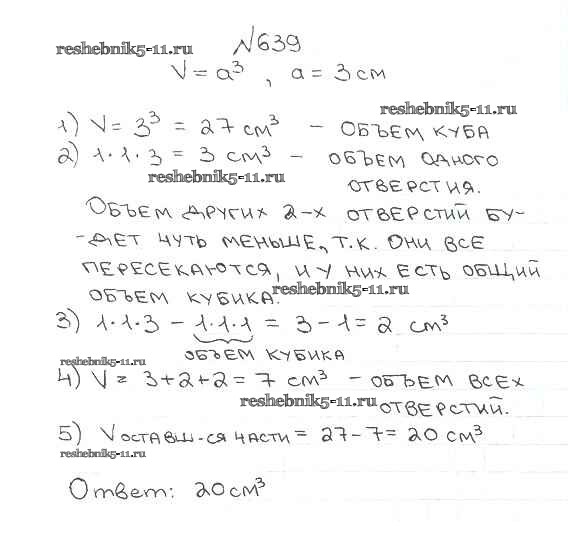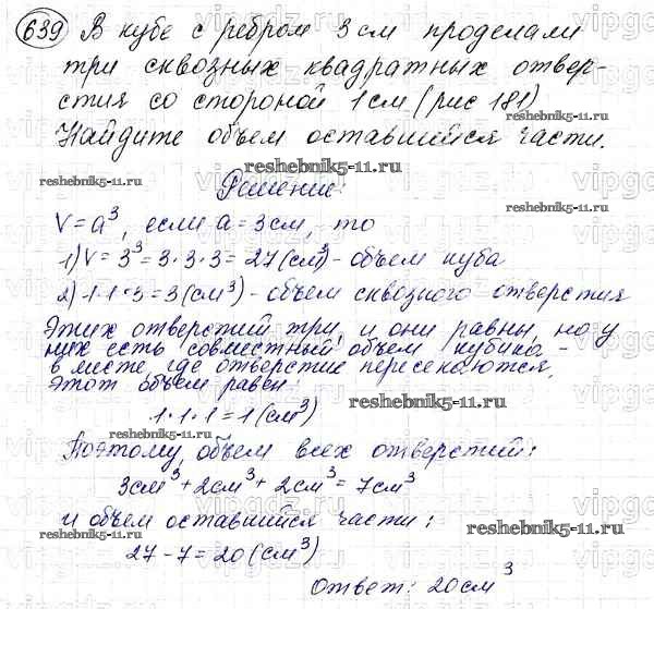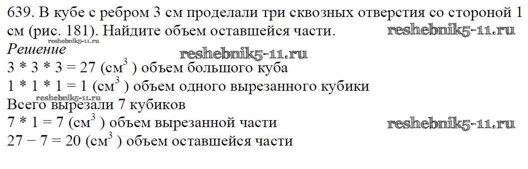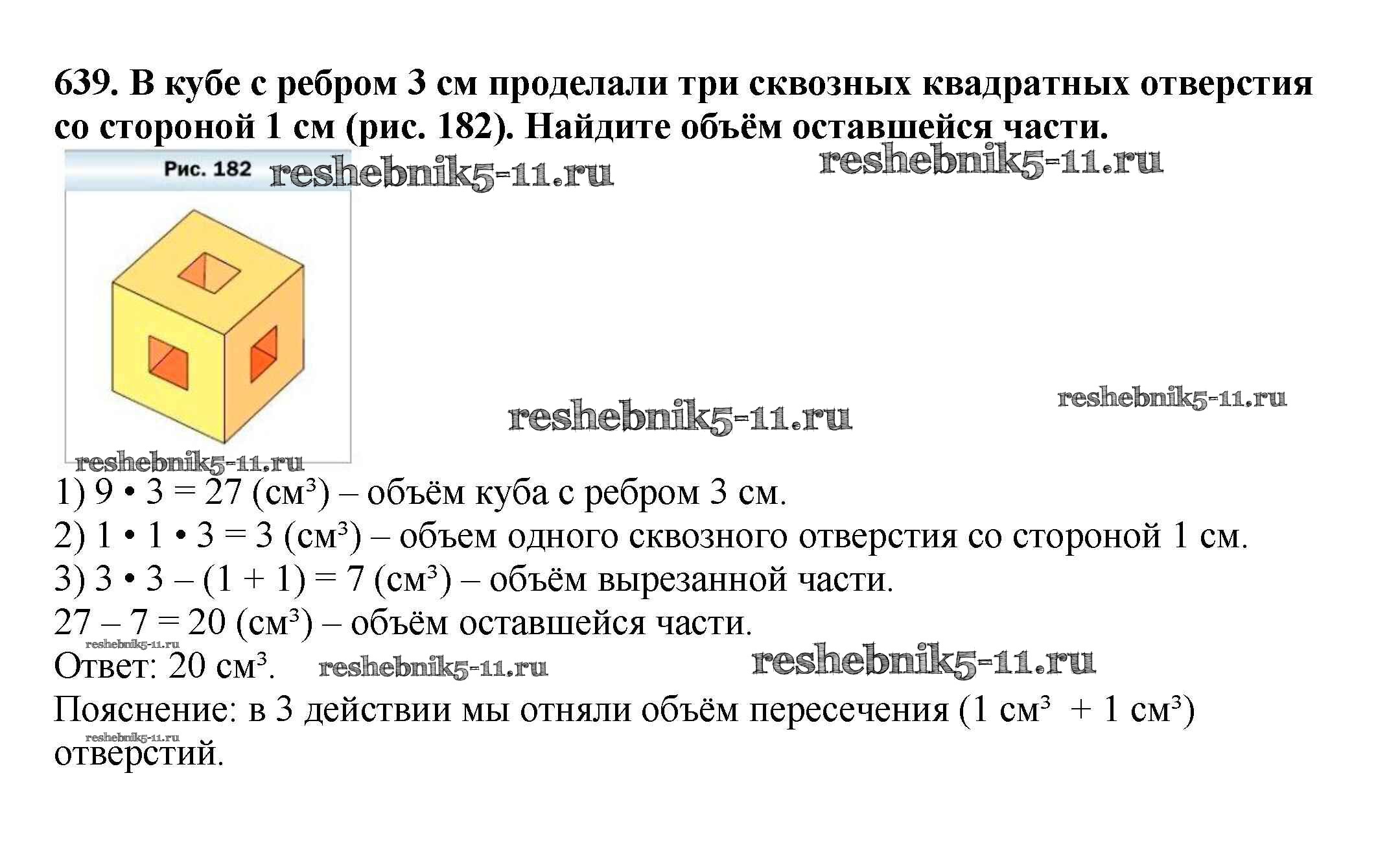 Готовая домашняя работа с ответами по Математике за 5 класс Мерзляк, Полонский, Якир Учебник Алгоритм успеха Вентана-граф 2016 ФГОС - §23. Объём прямоугольного параллелепипеда 639