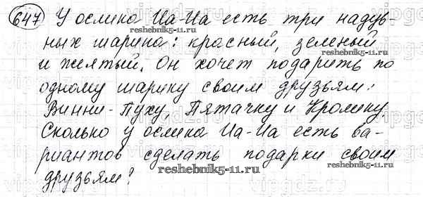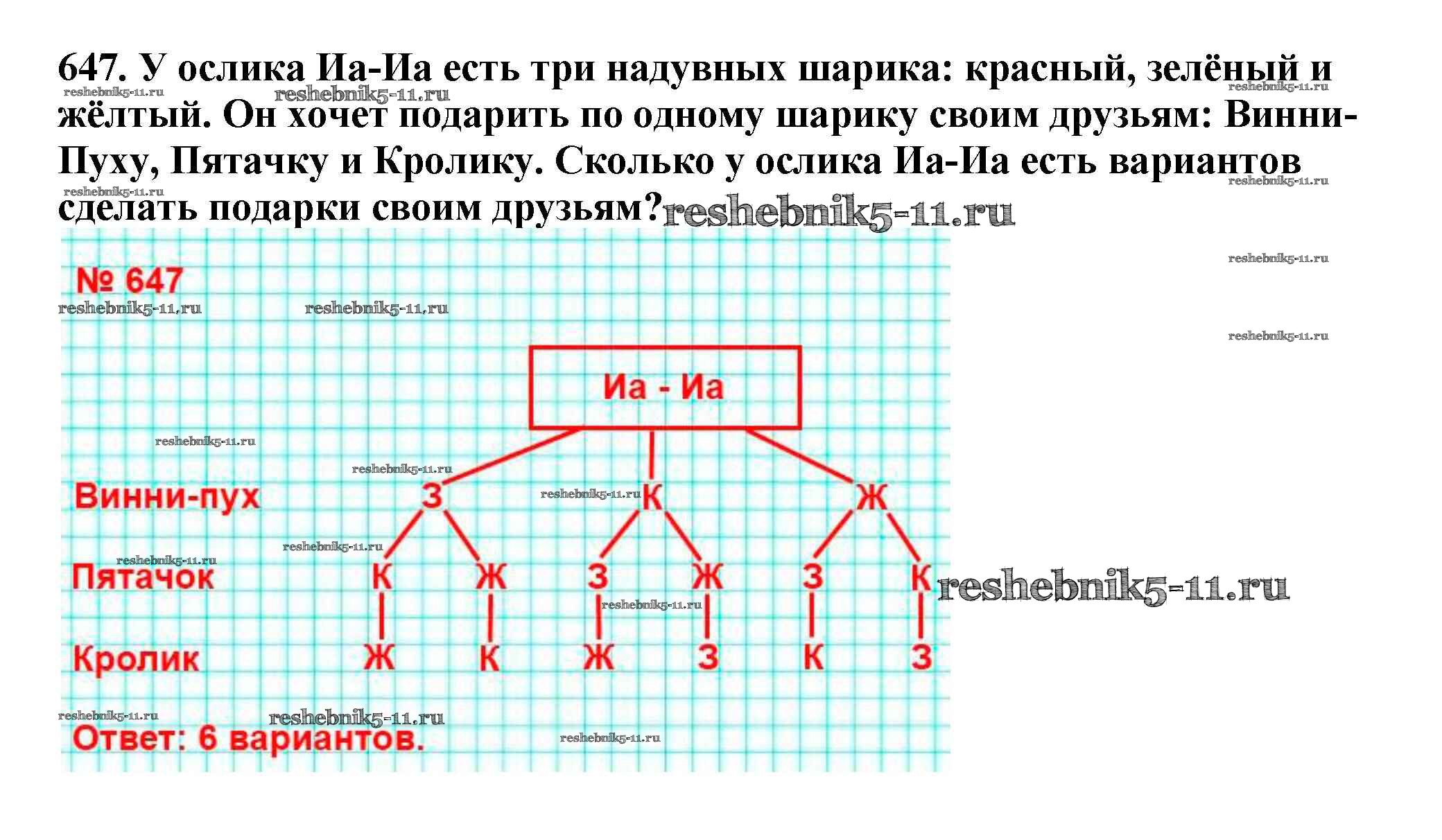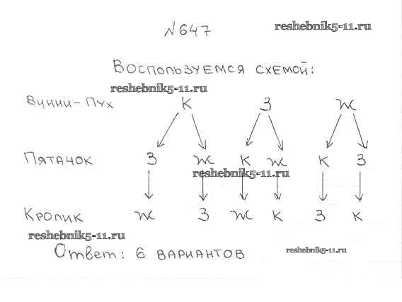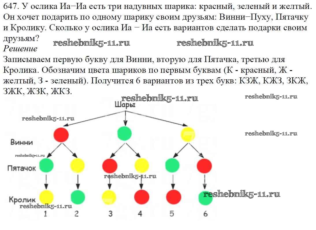 Готовая домашняя работа с ответами по Математике за 5 класс Мерзляк, Полонский, Якир Учебник Алгоритм успеха Вентана-граф 2016 ФГОС - §24. Комбинаторные задачи 647