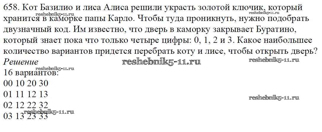 Готовая домашняя работа с ответами по Математике за 5 класс Мерзляк, Полонский, Якир Учебник Алгоритм успеха Вентана-граф 2016 ФГОС - §24. Комбинаторные задачи 658
