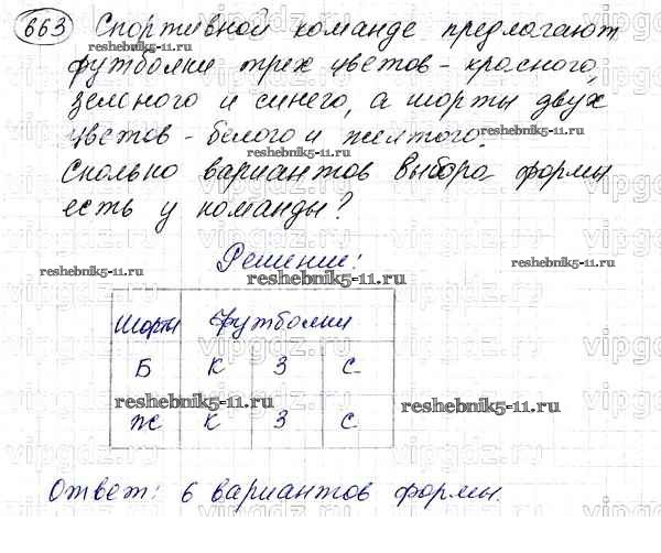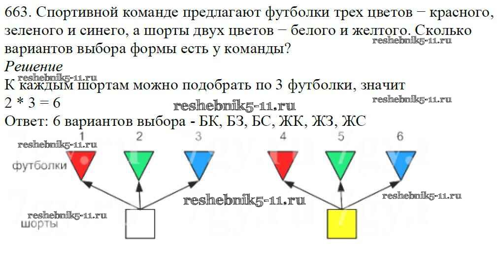 Готовая домашняя работа с ответами по Математике за 5 класс Мерзляк, Полонский, Якир Учебник Алгоритм успеха Вентана-граф 2016 ФГОС - §24. Комбинаторные задачи 663