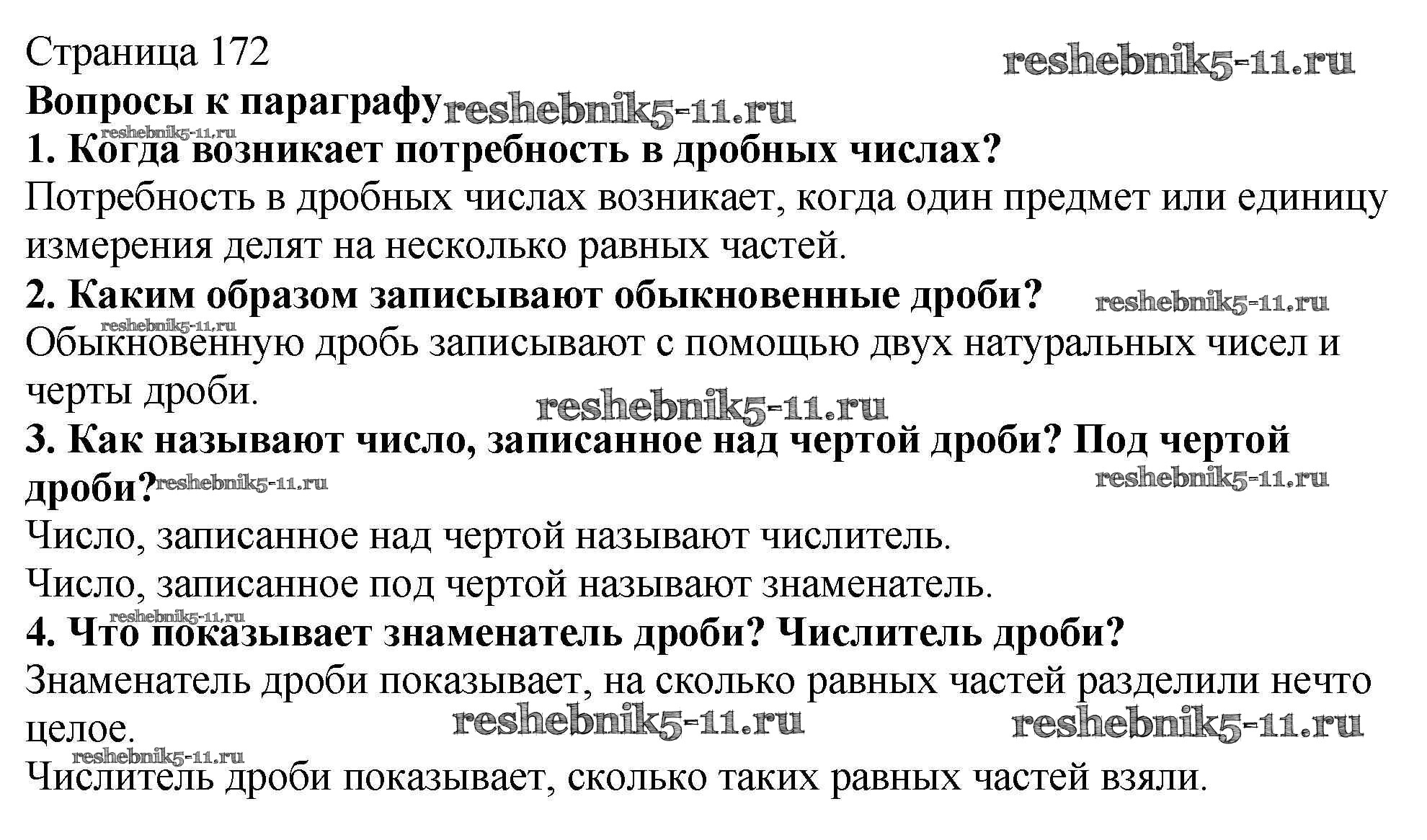 Готовая домашняя работа с ответами по Математике за 5 класс Мерзляк, Полонский, Якир Учебник Алгоритм успеха Вентана-граф 2016 ФГОС - Вопросы (страница 172) страница 172