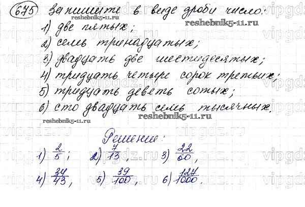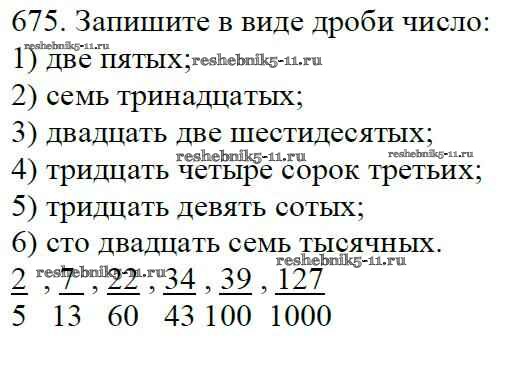 Готовая домашняя работа с ответами по Математике за 5 класс Мерзляк, Полонский, Якир Учебник Алгоритм успеха Вентана-граф 2016 ФГОС - §25. Понятие обыкновенной дроби 675