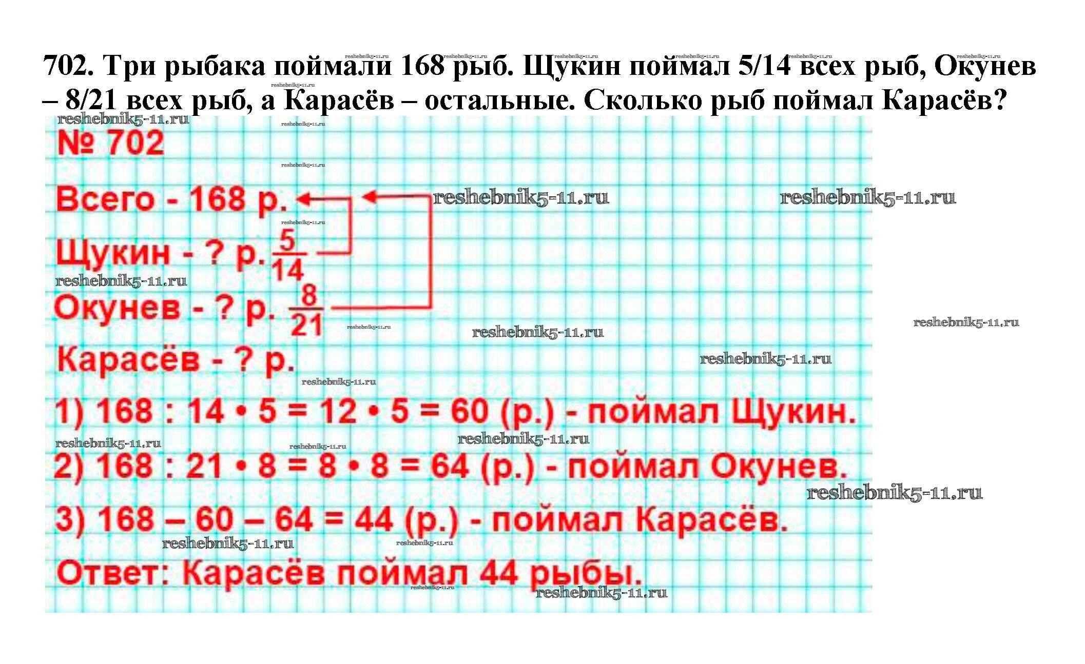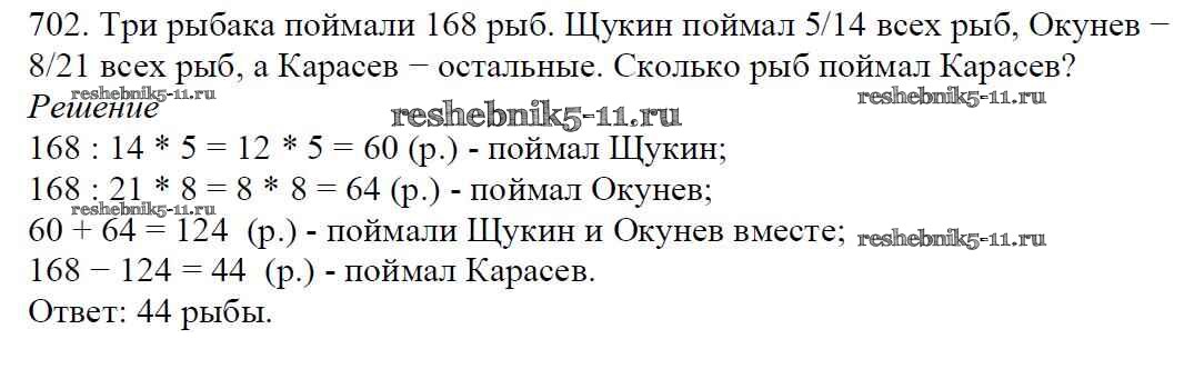 Готовая домашняя работа с ответами по Математике за 5 класс Мерзляк, Полонский, Якир Учебник Алгоритм успеха Вентана-граф 2016 ФГОС - §25. Понятие обыкновенной дроби 702
