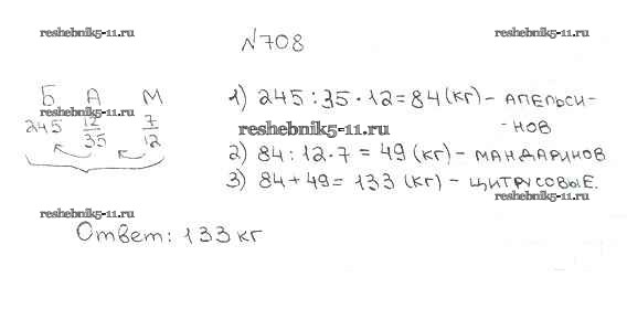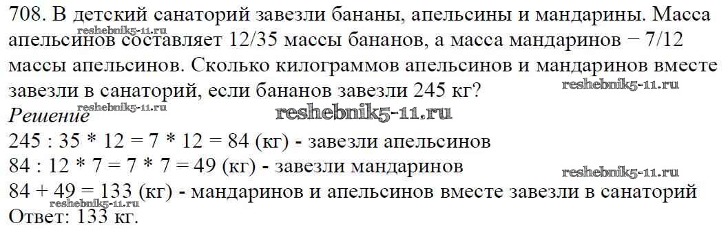 Готовая домашняя работа с ответами по Математике за 5 класс Мерзляк, Полонский, Якир Учебник Алгоритм успеха Вентана-граф 2016 ФГОС - §25. Понятие обыкновенной дроби 708