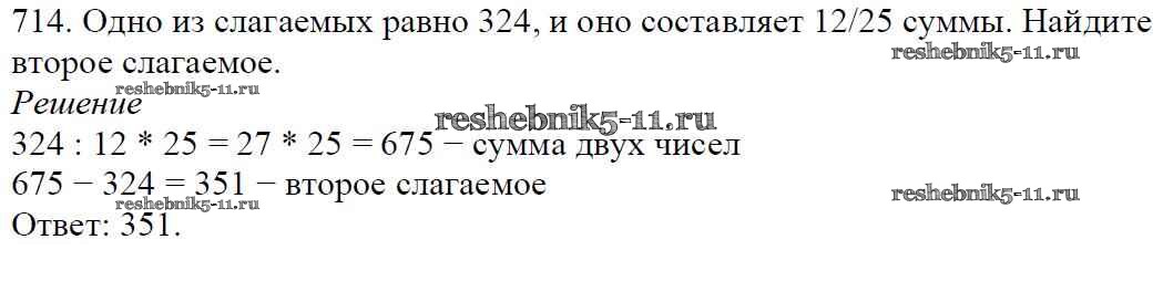 Готовая домашняя работа с ответами по Математике за 5 класс Мерзляк, Полонский, Якир Учебник Алгоритм успеха Вентана-граф 2016 ФГОС - §25. Понятие обыкновенной дроби 714