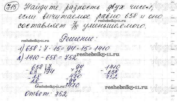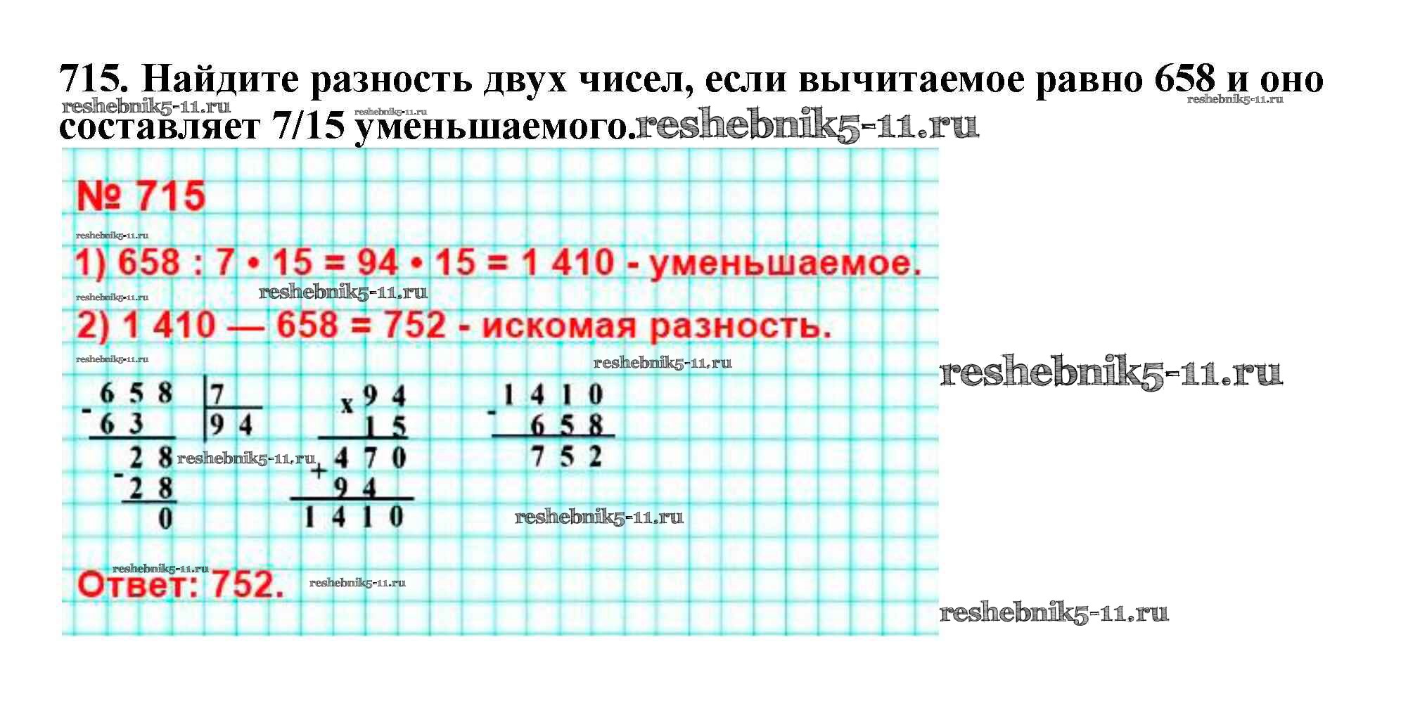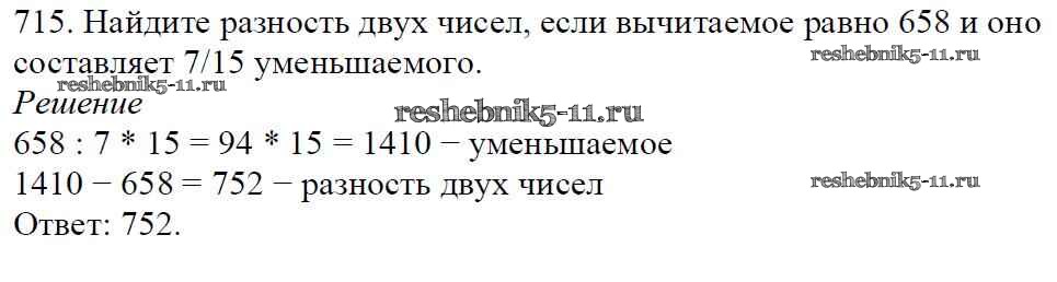 Готовая домашняя работа с ответами по Математике за 5 класс Мерзляк, Полонский, Якир Учебник Алгоритм успеха Вентана-граф 2016 ФГОС - §25. Понятие обыкновенной дроби 715