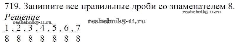Готовая домашняя работа с ответами по Математике за 5 класс Мерзляк, Полонский, Якир Учебник Алгоритм успеха Вентана-граф 2016 ФГОС - §26. Правильные и неправильные дроби. Сравнение дробей 719