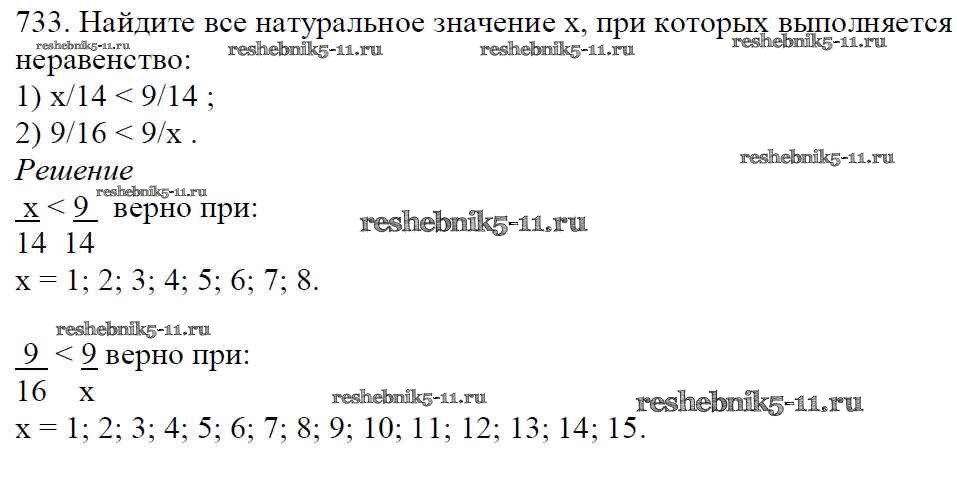 Готовая домашняя работа с ответами по Математике за 5 класс Мерзляк, Полонский, Якир Учебник Алгоритм успеха Вентана-граф 2016 ФГОС - §26. Правильные и неправильные дроби. Сравнение дробей 733