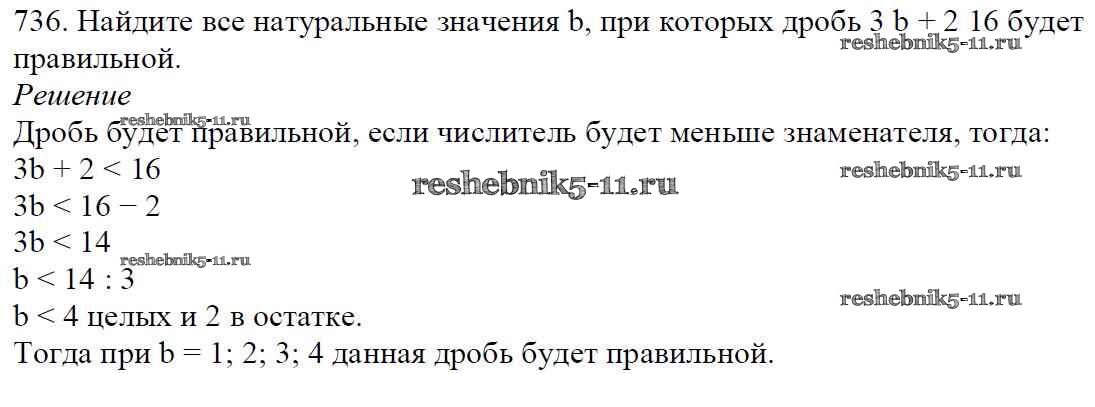 Готовая домашняя работа с ответами по Математике за 5 класс Мерзляк, Полонский, Якир Учебник Алгоритм успеха Вентана-граф 2016 ФГОС - §26. Правильные и неправильные дроби. Сравнение дробей 736