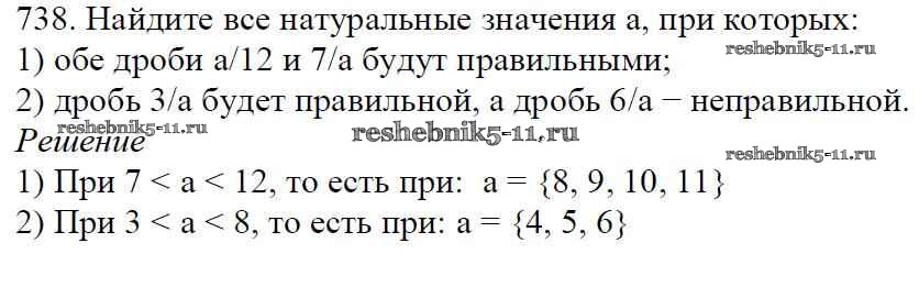 Готовая домашняя работа с ответами по Математике за 5 класс Мерзляк, Полонский, Якир Учебник Алгоритм успеха Вентана-граф 2016 ФГОС - §26. Правильные и неправильные дроби. Сравнение дробей 738