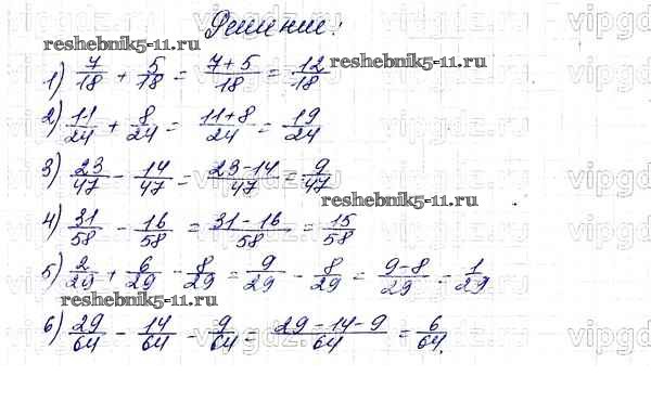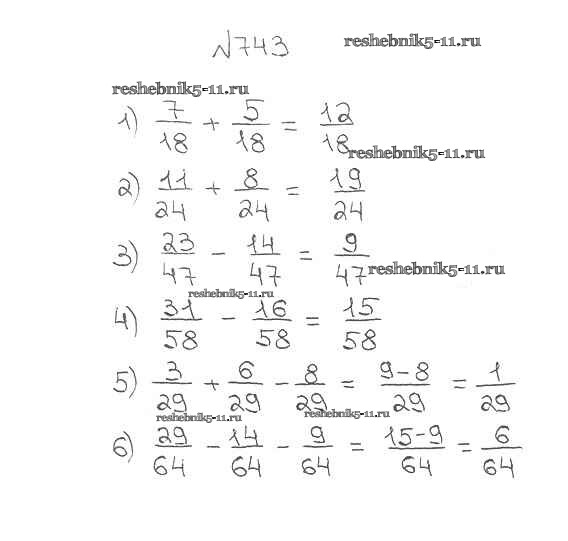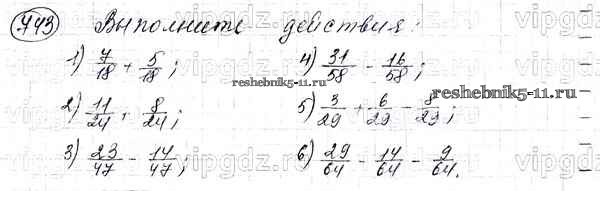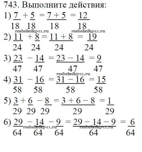 Готовая домашняя работа с ответами по Математике за 5 класс Мерзляк, Полонский, Якир Учебник Алгоритм успеха Вентана-граф 2016 ФГОС - §27. Сложение и вычитание дробей с одинаковыми знаменателями 743