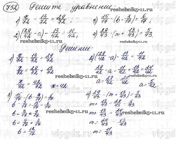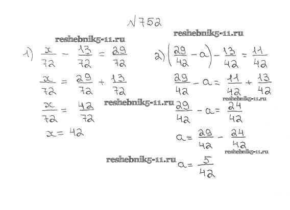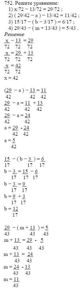 Готовая домашняя работа с ответами по Математике за 5 класс Мерзляк, Полонский, Якир Учебник Алгоритм успеха Вентана-граф 2016 ФГОС - §27. Сложение и вычитание дробей с одинаковыми знаменателями 752